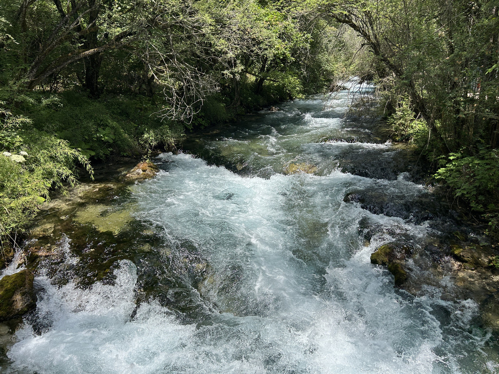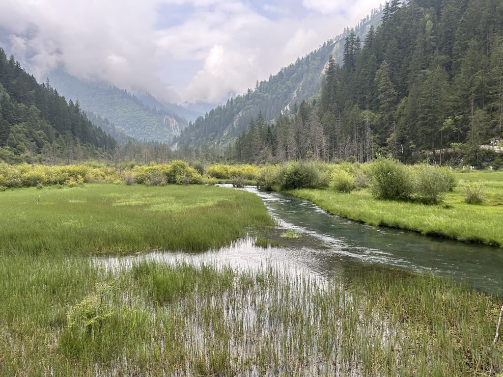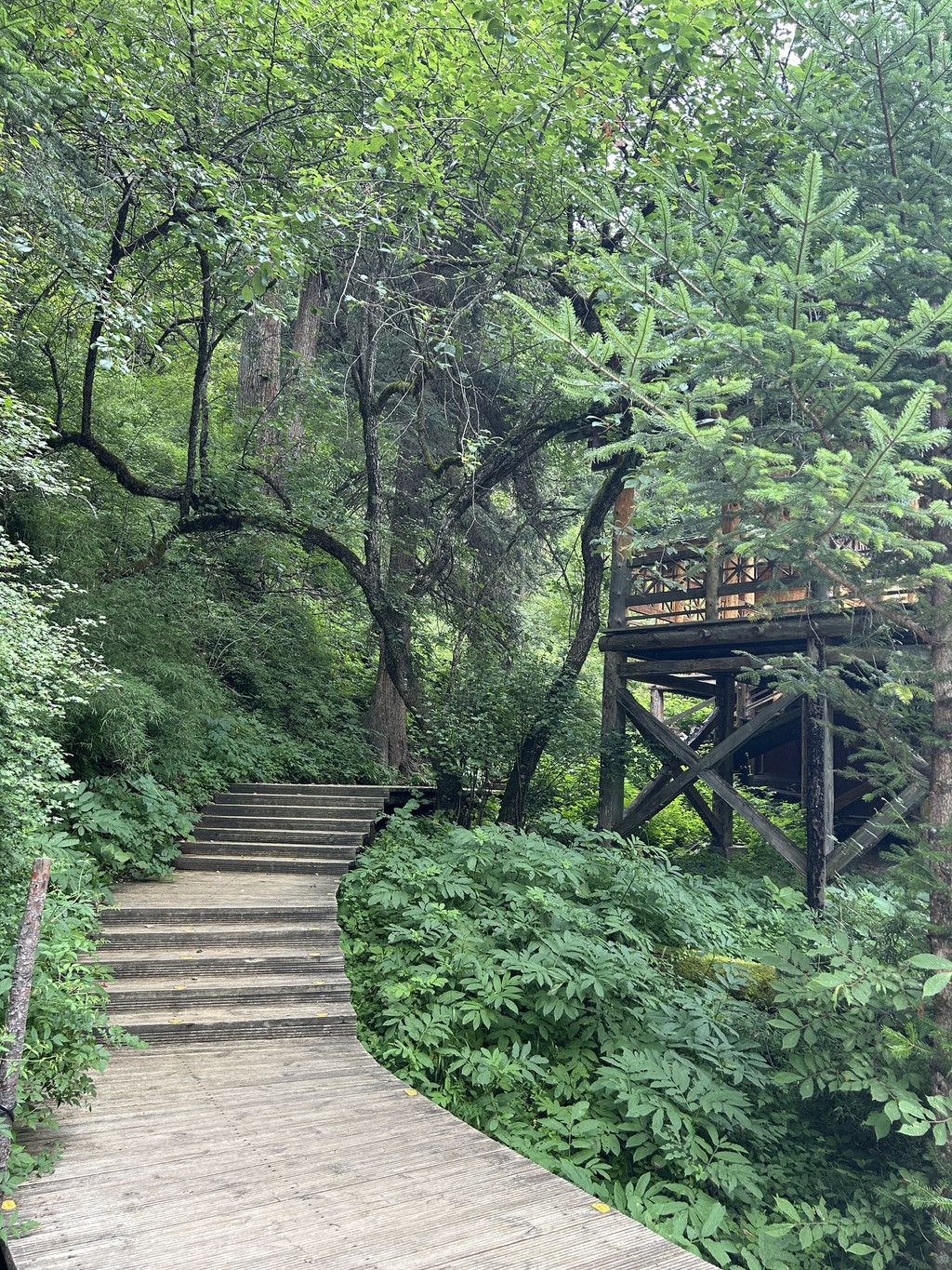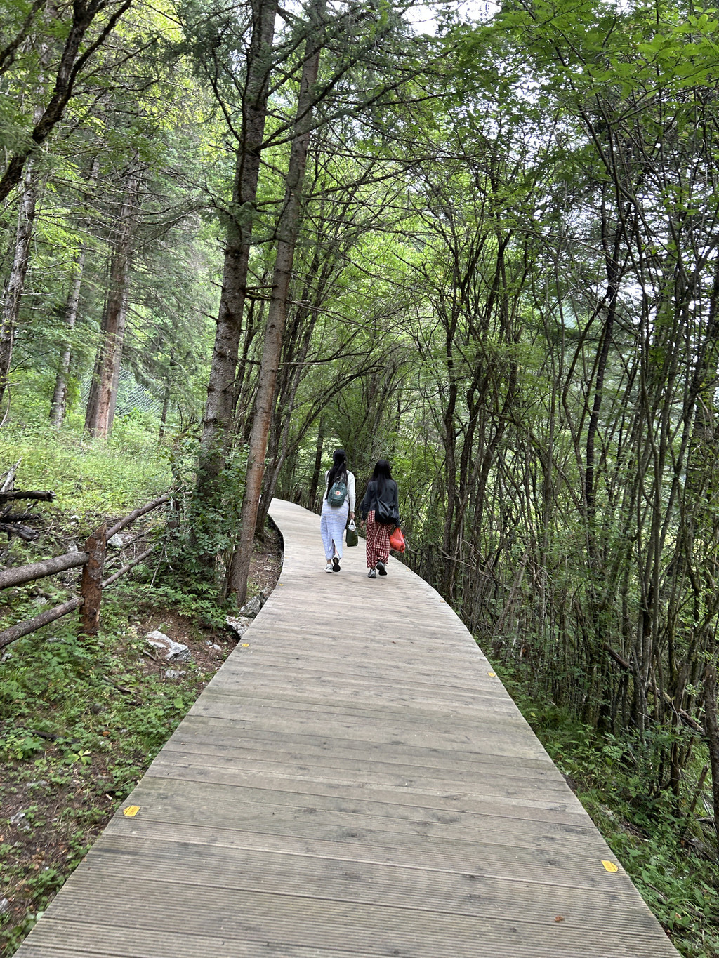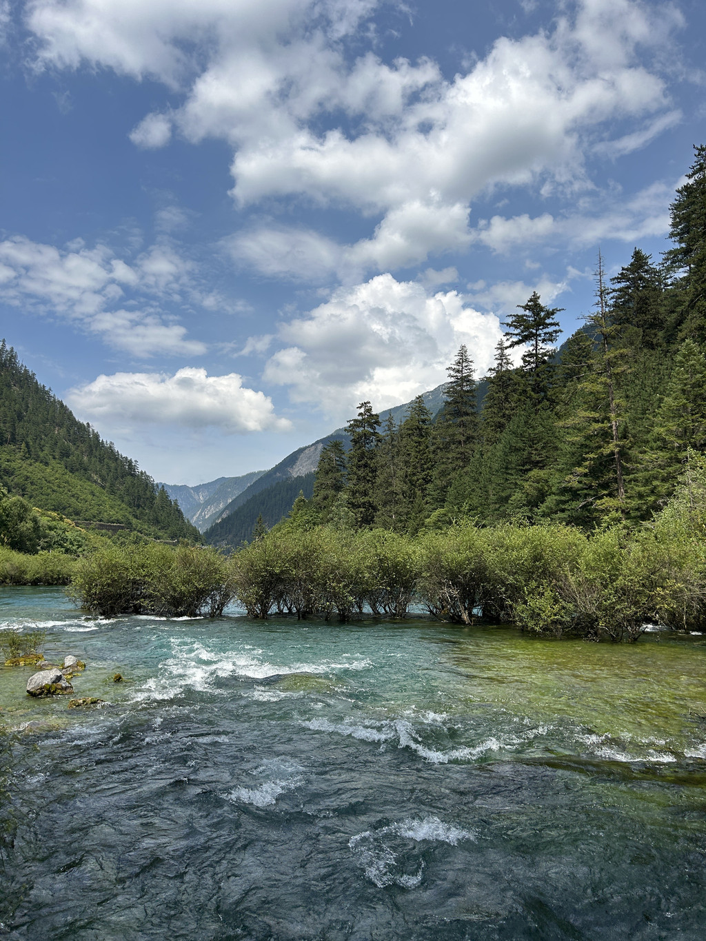 晨光中走进九寨沟,盛夏的山谷仿佛翠玉雕成的世界。观光车盘旋而上,窗外林木苍翠,时有溪流闪出碧色,一晃而过,仿佛钻进了一幅会流动的水彩画里。