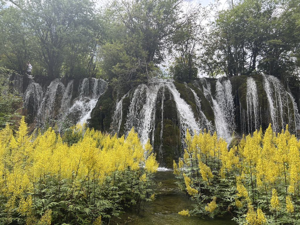 据说当年西游记剧组就是在这拍摄了师徒四人过瀑布的场景。那瀑布泻下的水帘宛如白练腾空,银花四溅,而声音更是雄浑,不愧为一绝。