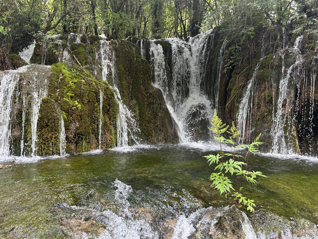 适值午后,阳光正好,我驻足诺日朗瀑布。站在观景台仰望,二十丈高的水帘撞在凸起的岩石上,绽开千万朵雪白的海棠。随风飘散的水雾扑在脸上,带着青苔与松针的芬芳。