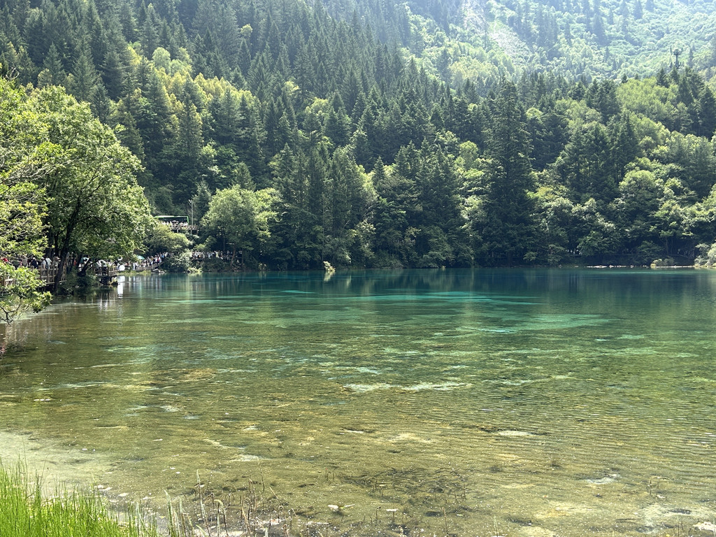 九寨沟的诸多海子中,箭竹海不算最出众,却别有风致。沿着木板栈道徐行,不觉已至其畔。水极清,极静。远望时,碧沉沉的一片,像一块巨大的翡翠被不经意地遗落在群山之间。近看,水底的枯树横斜,枝桠分明,竟似伸手可触。箭竹海四周,丛生着细密的箭竹。竹竿挺拔,竹叶婆娑,映在水中,绿意便深了一层。