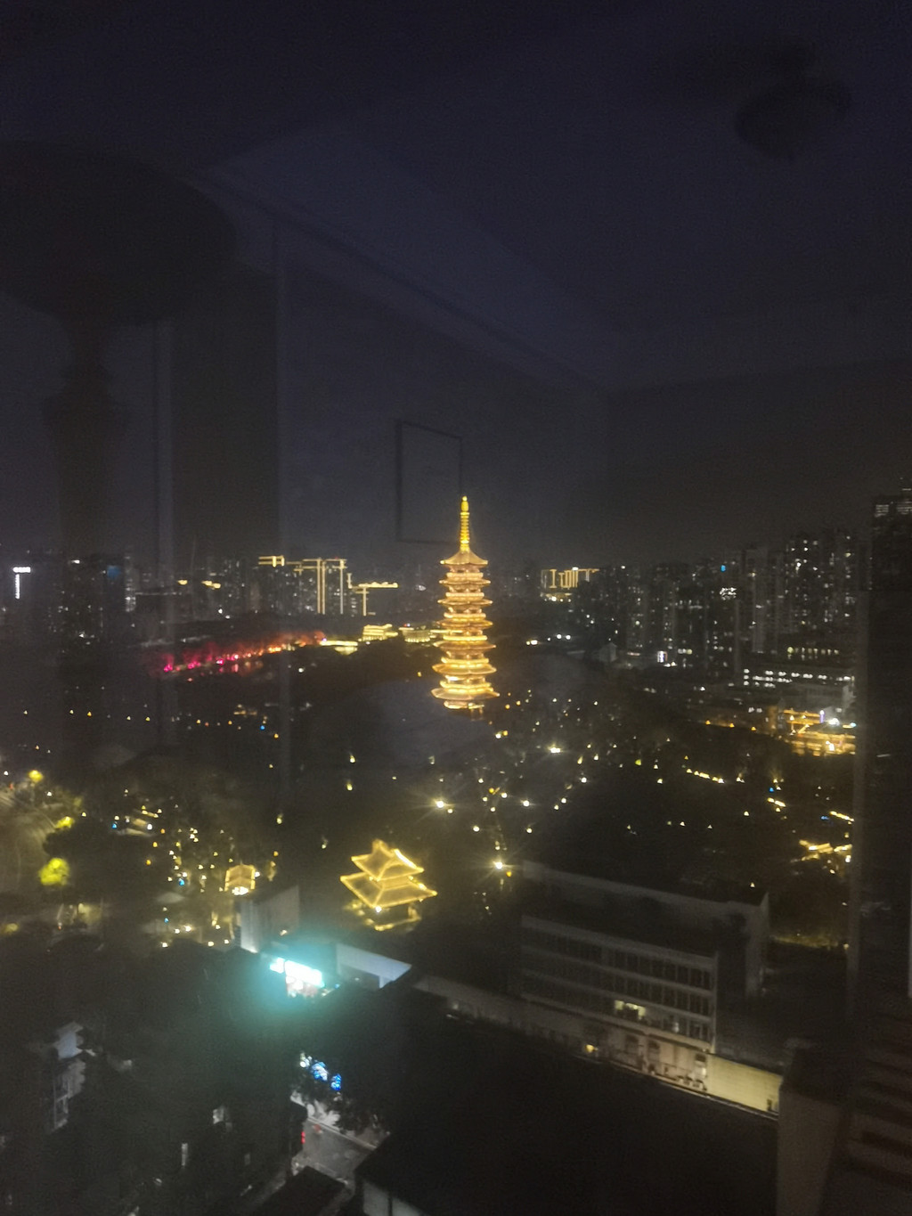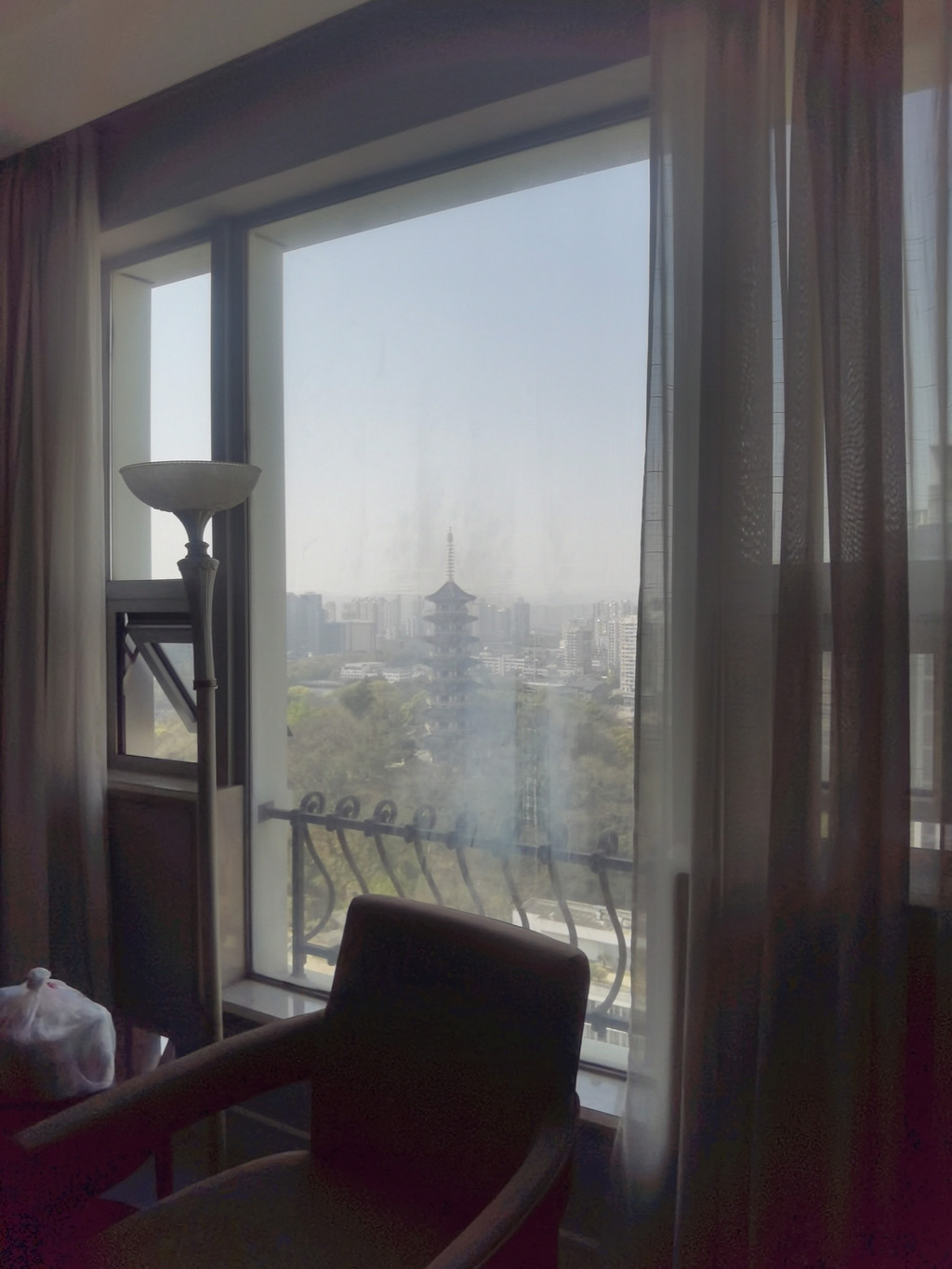 前台经理帮我们直接升到了19楼的行政楼层,视野非常好,可以看见定观塔。
