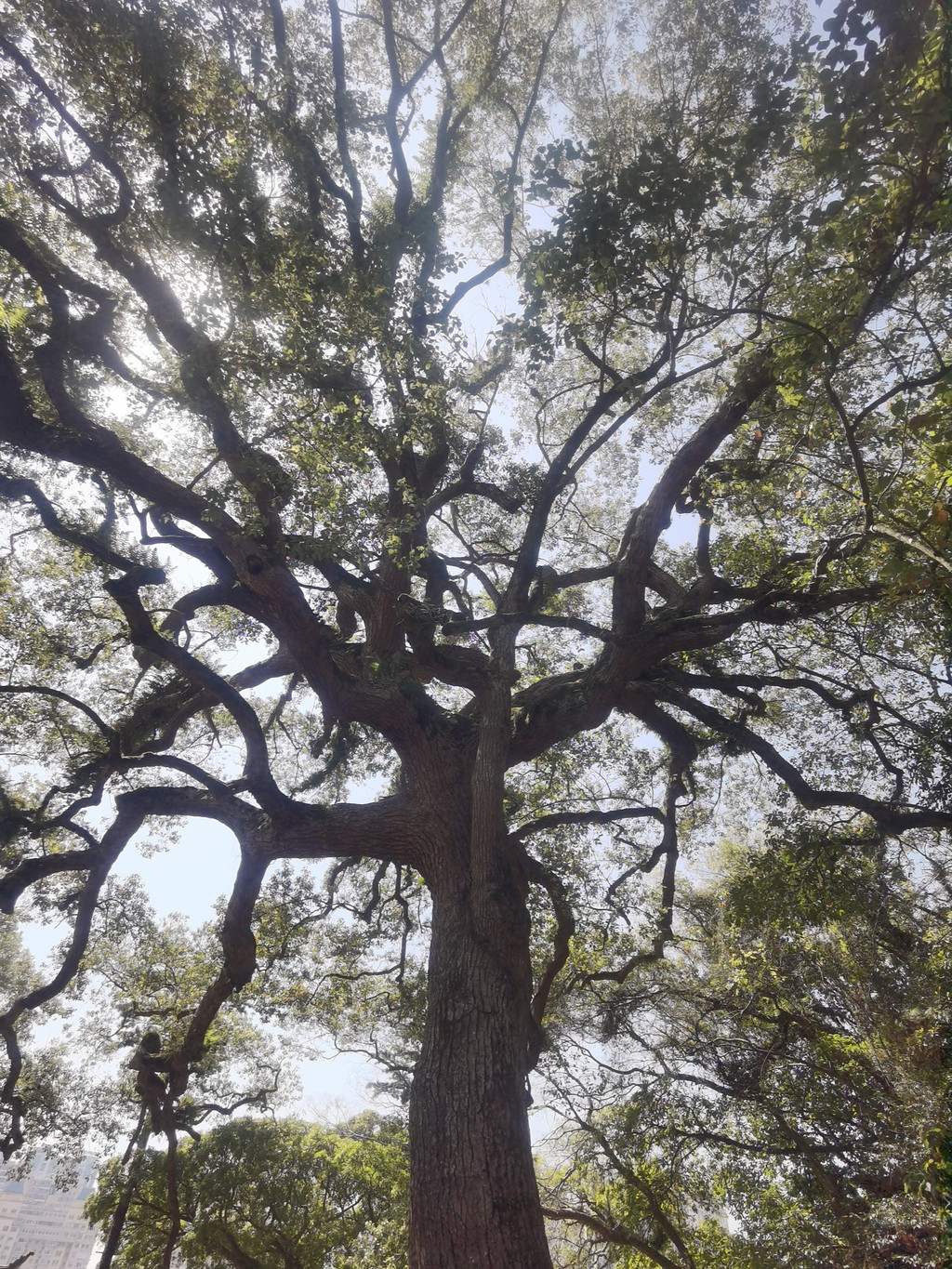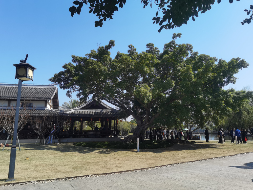 西塔这个区域还是很美的,古建、古树和山石,营造和江心屿的历史底蕴。江边有一棵800年的香樟,枝繁叶茂,形态瑰丽,上面还有很多寄生的植物,看起来朝气蓬勃。在这棵树下休息了一会儿,然后往回走。