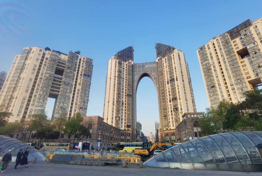 上面是巍峨的塔,下面是跳舞的人群,两耳充盈的是各种舞曲的节奏和卡拉OK的声音,真是热闹的五马