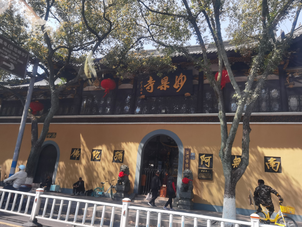 在酒店前门,错过了入口,然后现在重新绕回来,发现路边有一个庙。