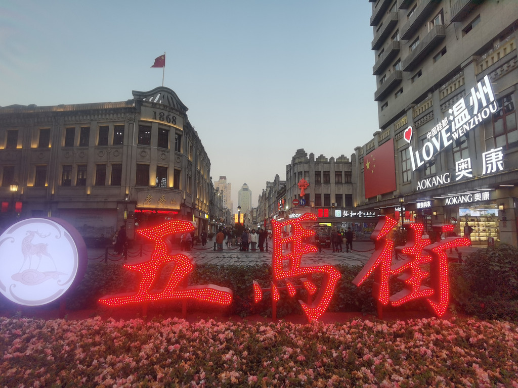 我们住的温州华侨饭店是一家老牌五星级酒店,周围商业成熟很热闹。