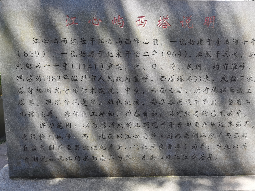 和老公商议了一下,温州我们感兴趣的有三个景点:雁荡山(时间和体力问题,放弃),江心屿、五马文化街区。我们打算开车去江心屿西园停车场停车,然后徒步游览景区。结束游览后,在五马街附近找一家酒店休息,傍晚再出来逛五马街和晚餐。