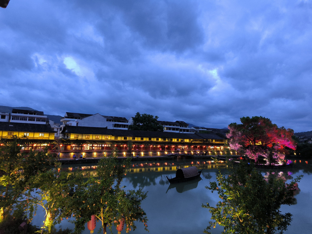 然后去五马步行街,顺便吃点小吃就当晚餐了,到晚上8点去坐游船看了塘河夜画,两岸有各种真人演员和声光表演,值得一看。