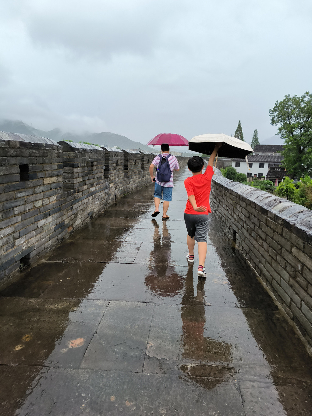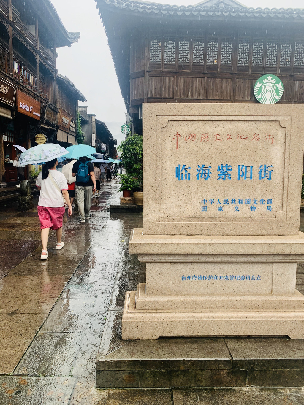 酒店早上的自助餐还不错,吃完后就冒着大雨前往台州府城墙,一直下着大雨,游客不是很多