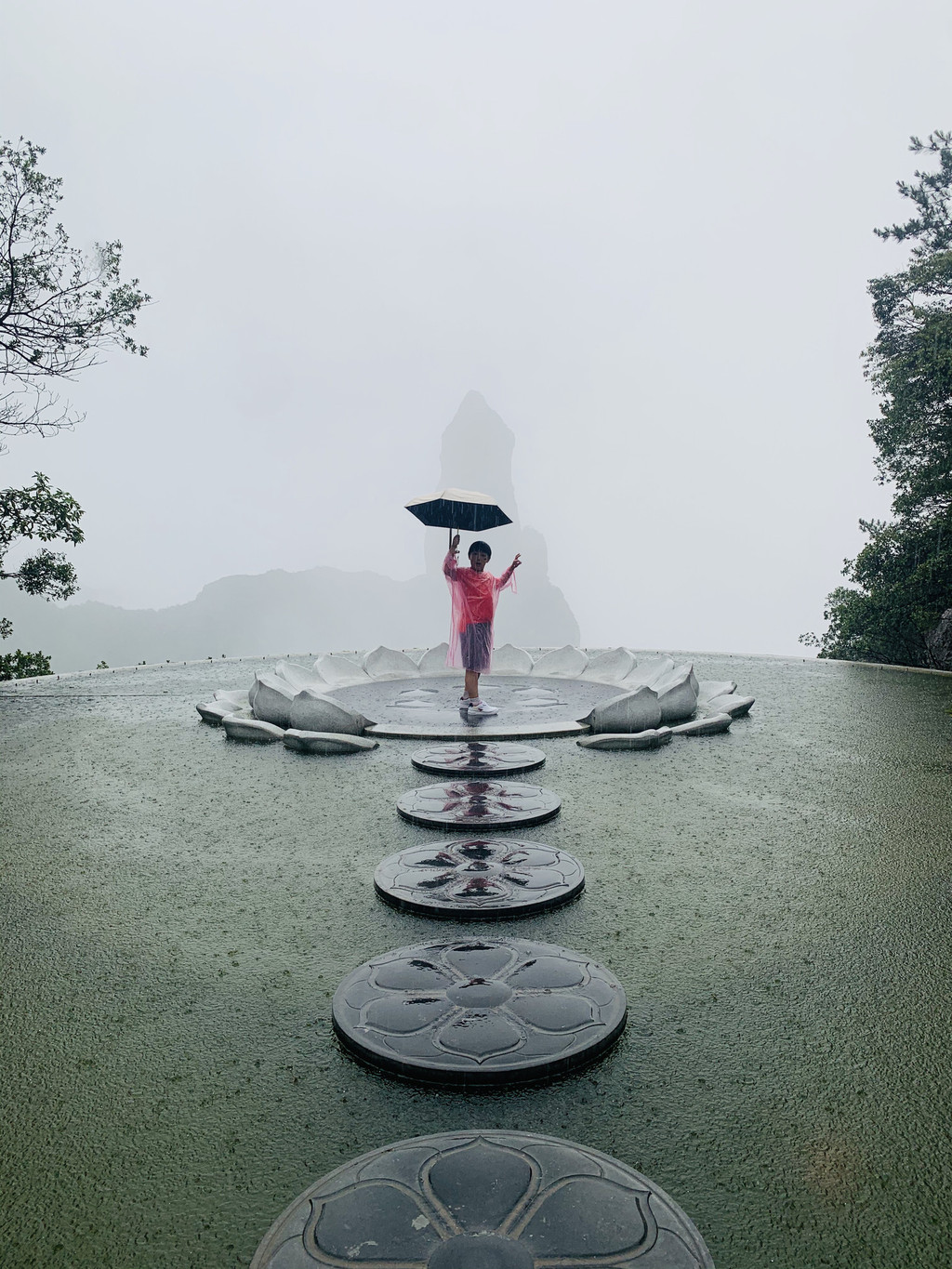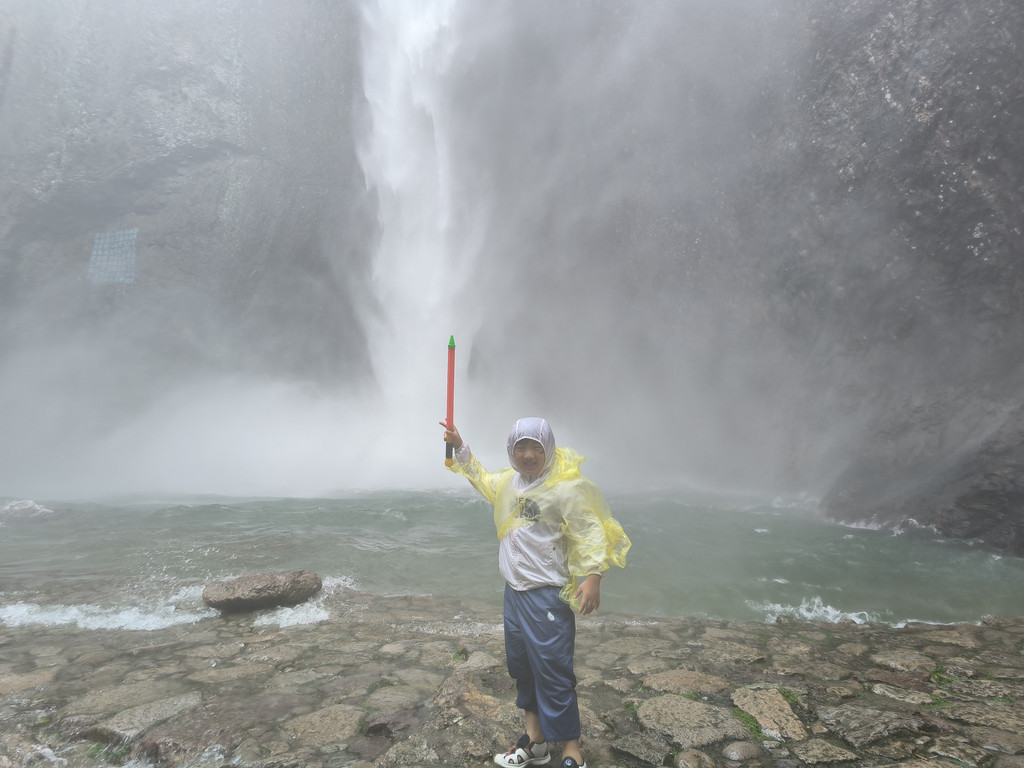 吃完就直奔神仙居,到神仙居雨更大了,虽然准备了一人一把伞,但都小巧轻便的防嗮小伞,外面下暴雨,伞里面下小雨,后来把一次性雨衣也穿上了才好点。因为暴雨,神仙居景区游客也很少,看到一个电子屏显示景区内游客只有35人。暴雨天雾太大,白茫茫一片,倒是像神仙居住的地,只是绝大部分景色都看不到了。
