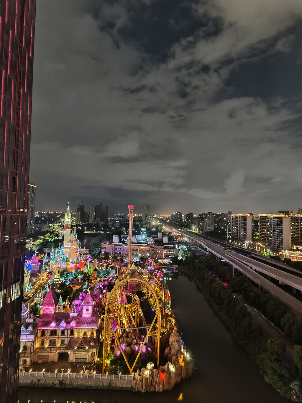 逛完老外滩就去酒店了,第一天定的是宁波罗蒙希尔顿酒店,主要是因为有特斯拉超充,就在罗蒙乐园边上,在房间就能看到乐园,可惜没时间去乐园玩。晚上下起了暴雨,台风来了。