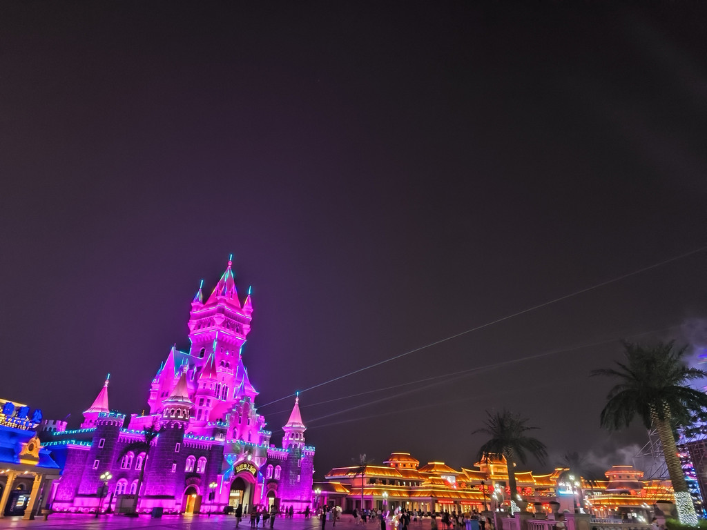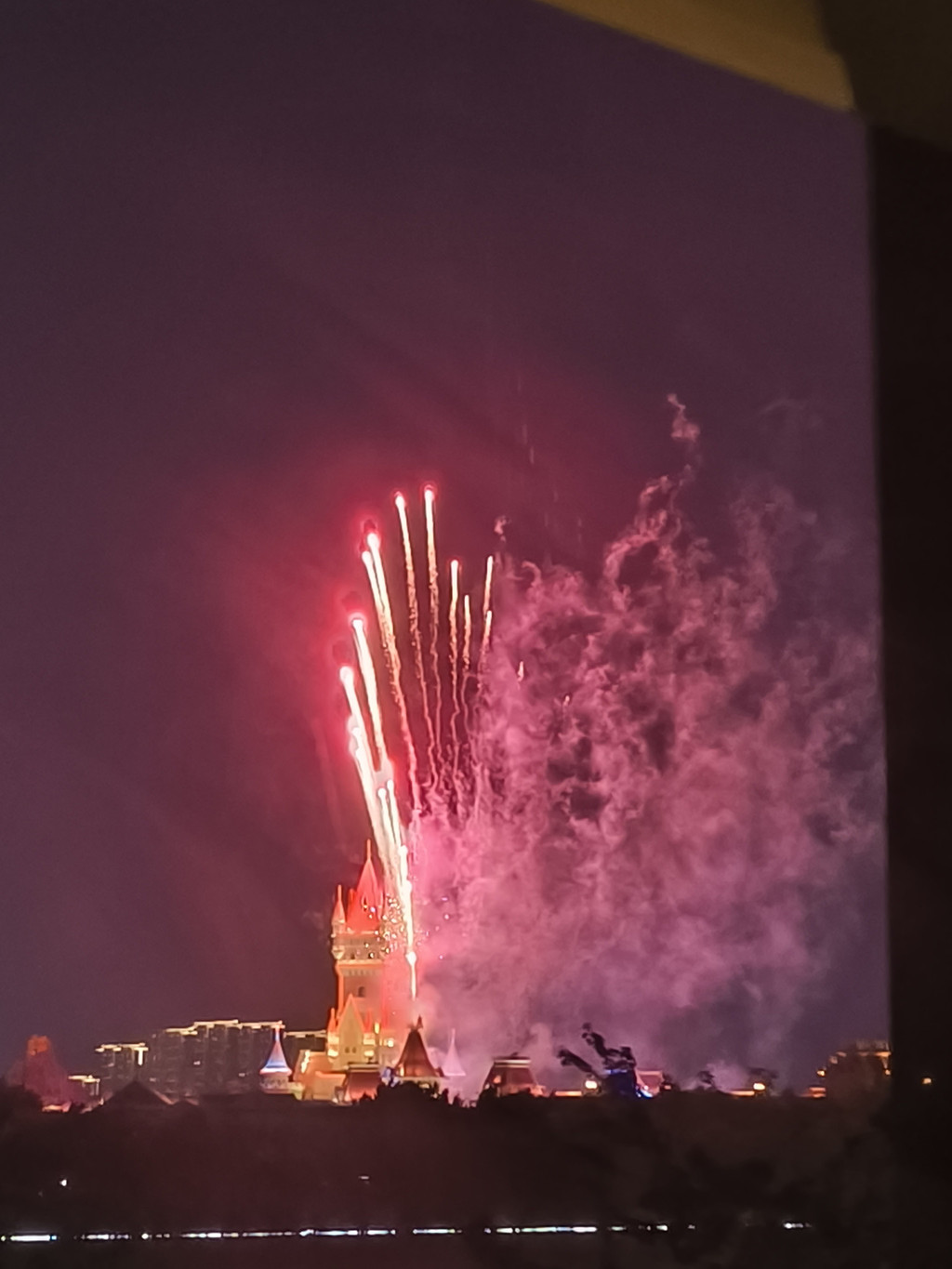 等到晚上9点乐园还有很漂亮的烟花秀。 在酒店的阳台也能看到