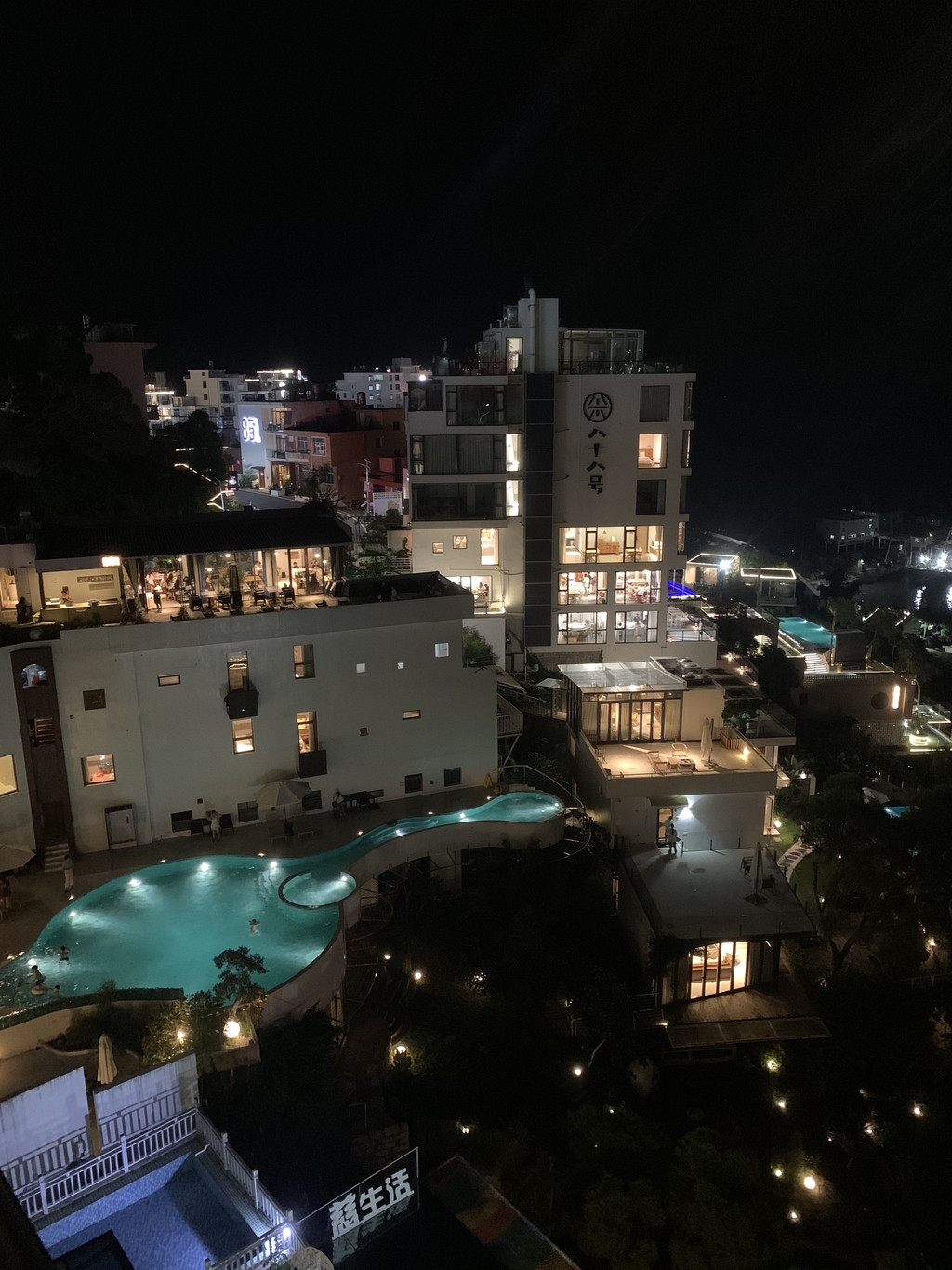 中午两三点在雁荡镇上“舌尖上的雁荡”饭店算吃了中饭,然后就去霞浦了,晚上是住在霞浦县东壁村的夕映民宿,等到民宿都晚上七八点,天都黑了,但东壁村这片都是各种网红民宿,各个海景无边泳池都亮着灯,看着特别热闹。