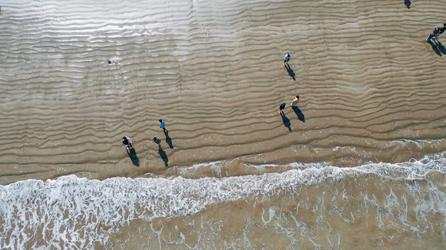 办理完入住后我们径直去往海边,还不算旺季,所以人不多,沙滩还是很大大,看着波光粼粼的海水,脚下踩着细腻柔软的沙子,好舒服啊!象山的沙滩去过很多歌,半边山的沙质确实脚感最好!整个沙滩面积也大,让人真正感受到了可以自由自在奔跑的感觉。一阵风吹过,海浪拍打着岸边,发出一阵阵悦耳的声音。这时,我们的心情也随着海浪欢腾起来。