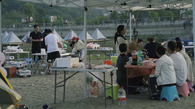 用着旅游度假景区给我们的烧烤架和食材,我们开始烤起了我们的午饭。大家围坐在一起,吃着自己亲手烤出来的美食,聊着天,看着天空的云朵,感觉非常惬意。这里的烧烤食材还算新鲜,价格也公道,也免去了自带的麻烦,总之露个营,吃吃零食聊聊天,半天光景一下子就过去了。