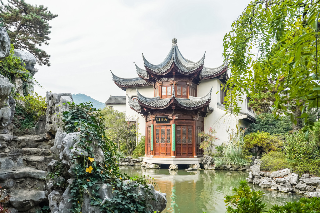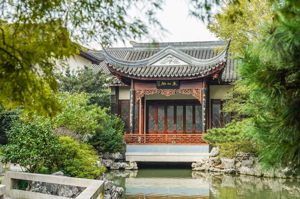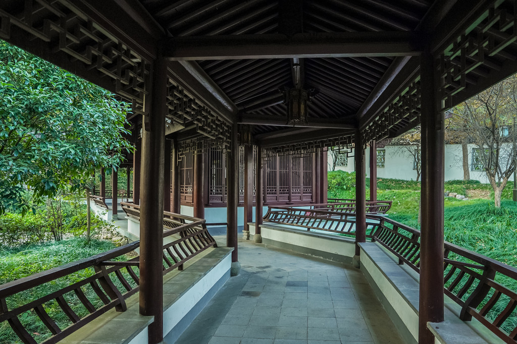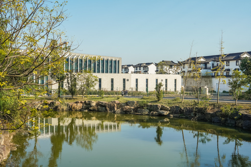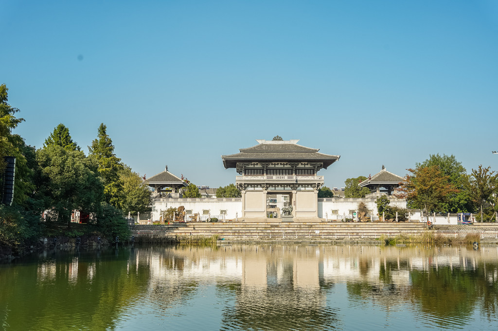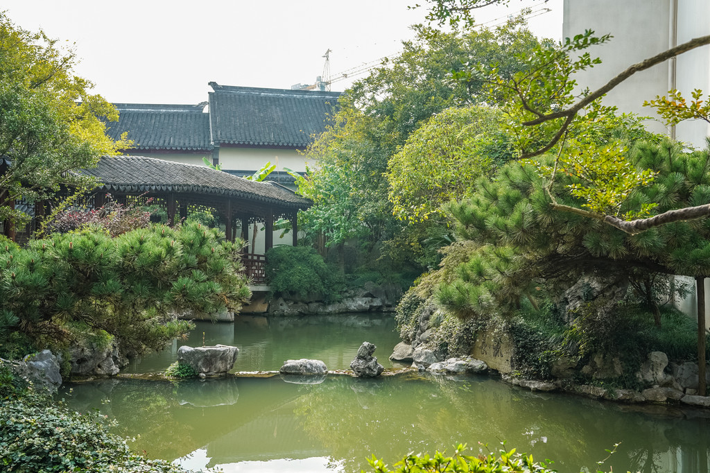 这是个中式古典园林建筑风格的博物馆,园内小桥流水、白墙黛瓦、亭台水榭,回廊飞檐、草木游鱼,给人以一步一景,清新雅致之感。