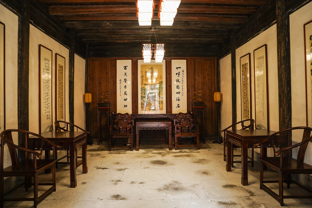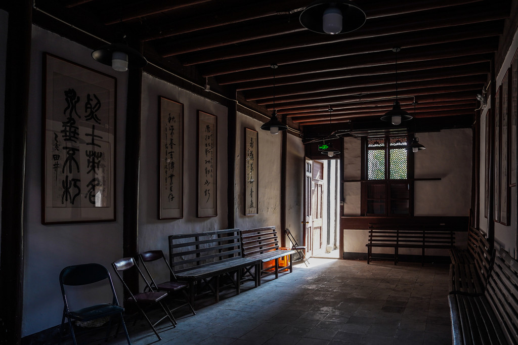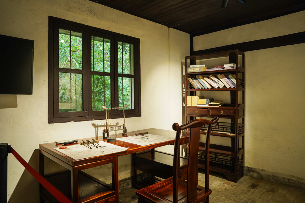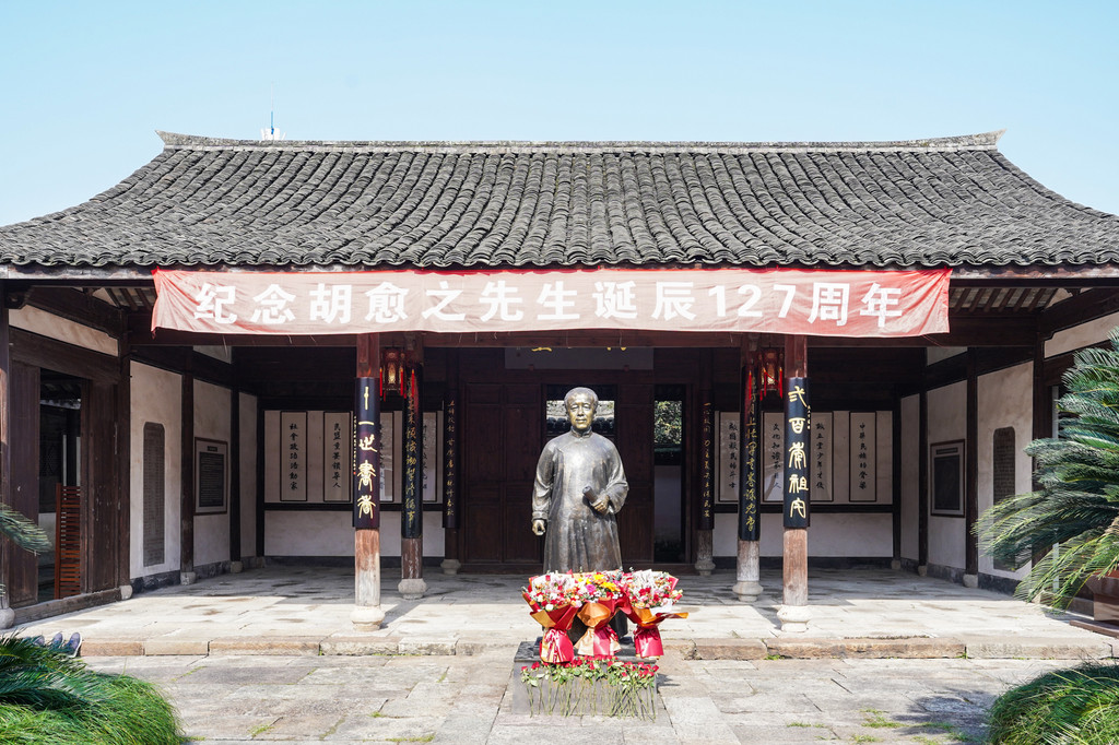 这座建筑始建于清乾隆时期的敕五堂,整体建筑宽敞宏亮。这里充满了书香气息,处处体现出胡愈之先生的儒雅与博学。