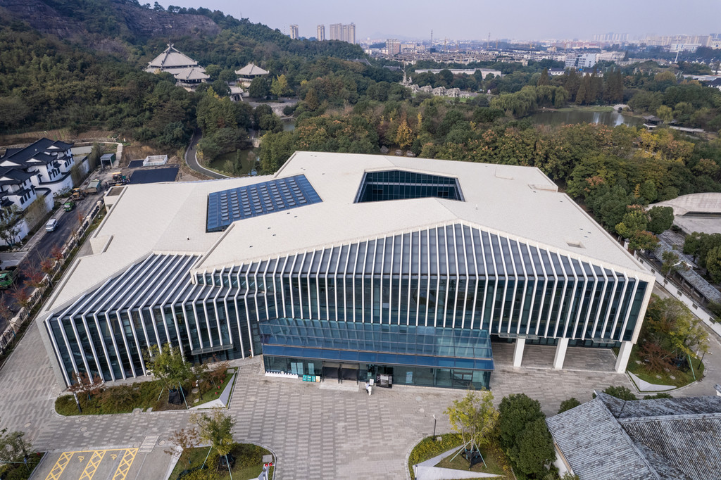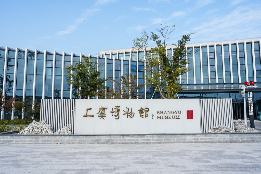 上虞博物馆的建筑风格让我印象深刻。博物馆整体外观简洁大方,以灰白色为主调,它融合了现代与古典元素,既显得时尚又充满了文化底蕴。博物馆的入口处有一个大广场,上虞博物馆几个字苍劲有力,广场两侧种植着郁郁葱葱的树木,给人一种宁静而庄重的感觉。