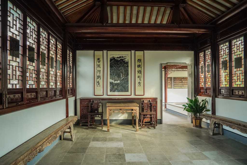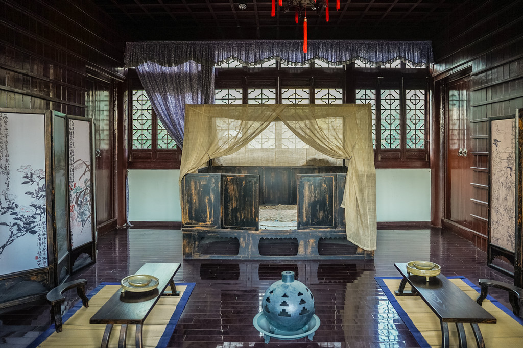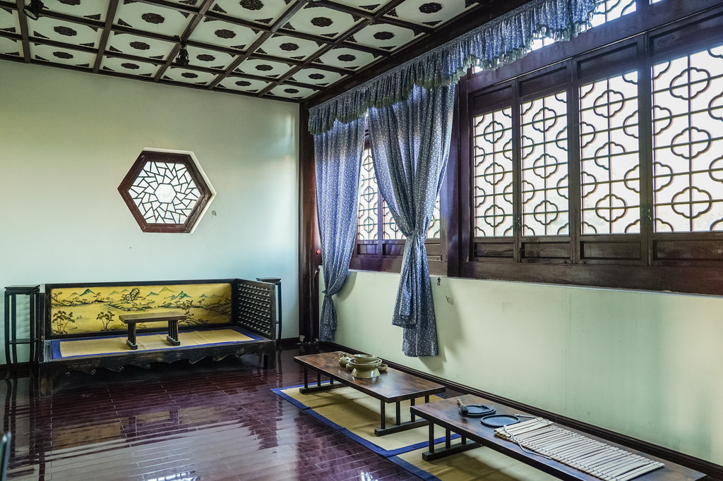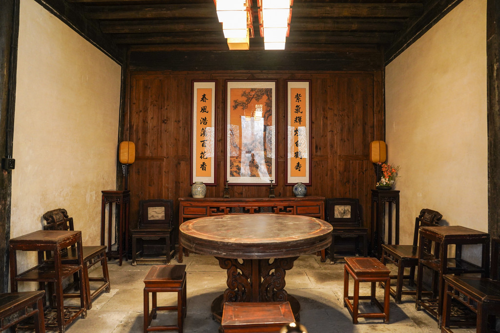 这个院子的建筑风格朴素却不失风雅,充满了江南特色。每个房间的木椅子、木桌子和精致的雕花橱柜等家具都展现了浓郁的文化气息。