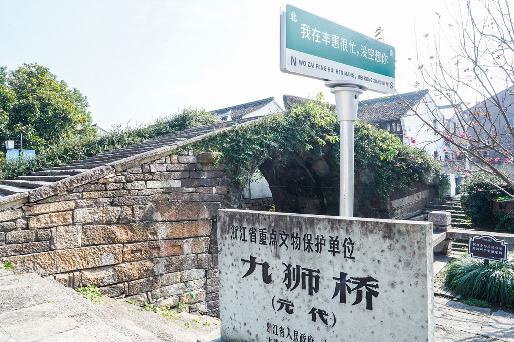 古镇上有许多历史建筑和古迹,这其中最引人注目的应该是这座建于元代的九狮桥了,它见证了丰惠古镇的繁荣与衰落,是一段历史的缩影。