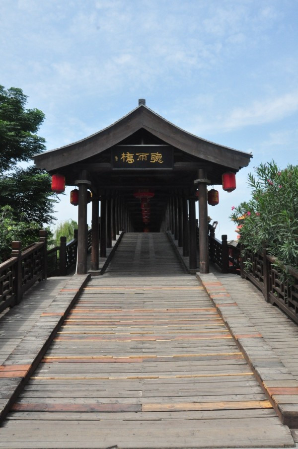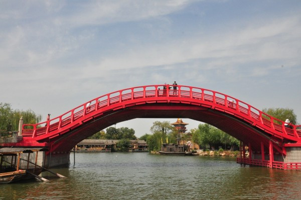 虹桥:虹桥是中国古代桥梁史上的一项重要创造,被列为中国十大名桥之一,也是清明上河园的一处主要景观。它横跨“汴河”,颜色鲜艳,耀眼夺目。