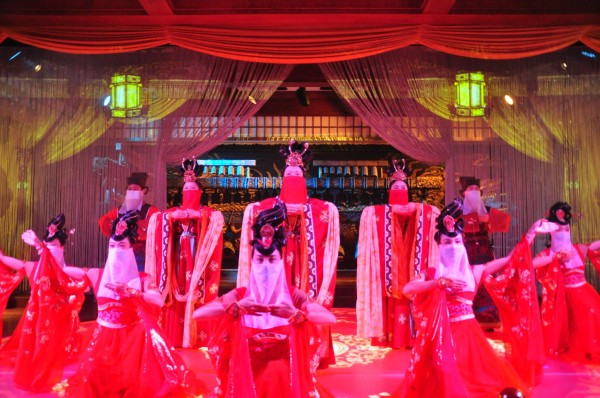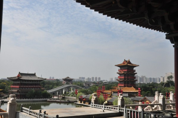 由于我们是景区西门入园,以次由北苑到南苑,逐个过目,演出由于是晚间,只好免了。下午1点从东门出来,游览时间长达4个小时。然后,乘公交前往开封府景区。