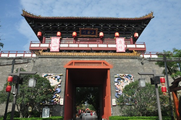 上善门:北宋时的开封城,城门很多,上善门就是其中之一。它宏伟高大,庄重威严,是《清明上河图》中浓墨重彩描绘的标志性建筑。它既是出土开封的重要通道,又是城市和农村的分界线,现在复原的城门高21.6米,面积1553平方米,门洞高达8米。城楼上,金碧辉煌的彩绘更显示出它的辉煌与壮观。
