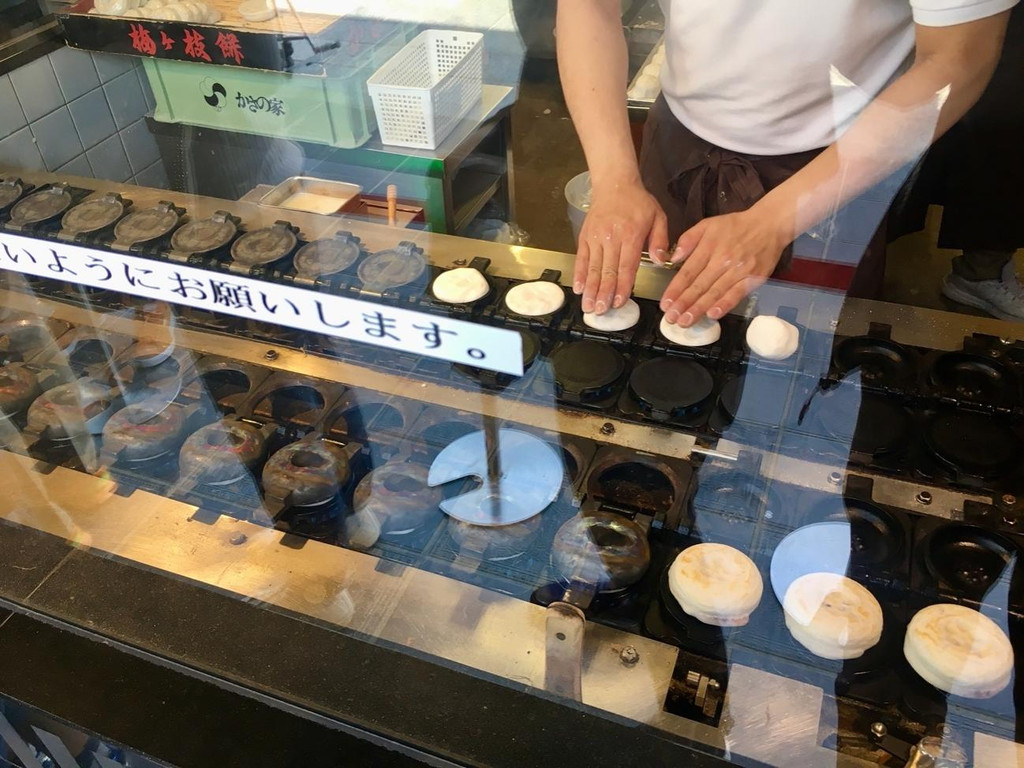 太宰府天满宫门前售卖一种叫做梅枝饼的烧饼。薄薄的糯米皮裹着一层红豆馅,饼上印有梅花图案。烧饼的香味与红豆的甜糯交融一体,是可口小甜点中的上品之选。