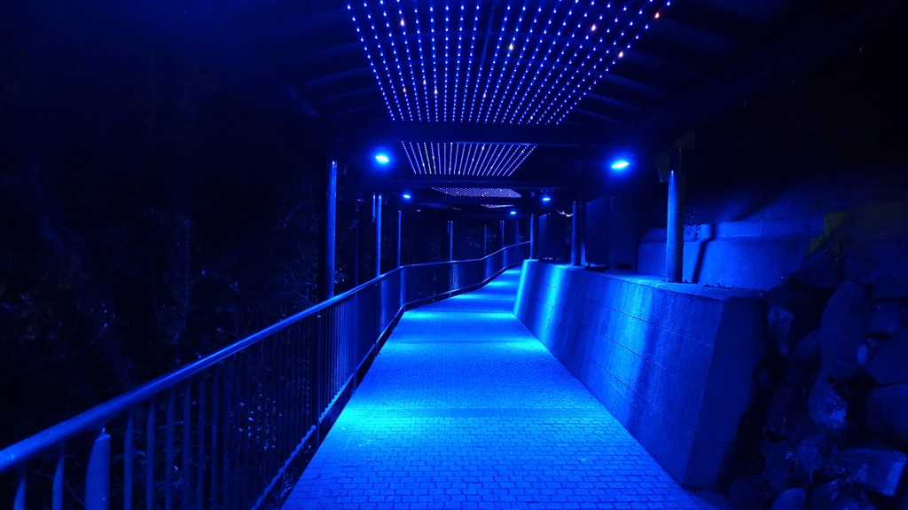 首先搭乘扶梯通往顶端,再顺势而下,可一览哥巴拉园全貌。