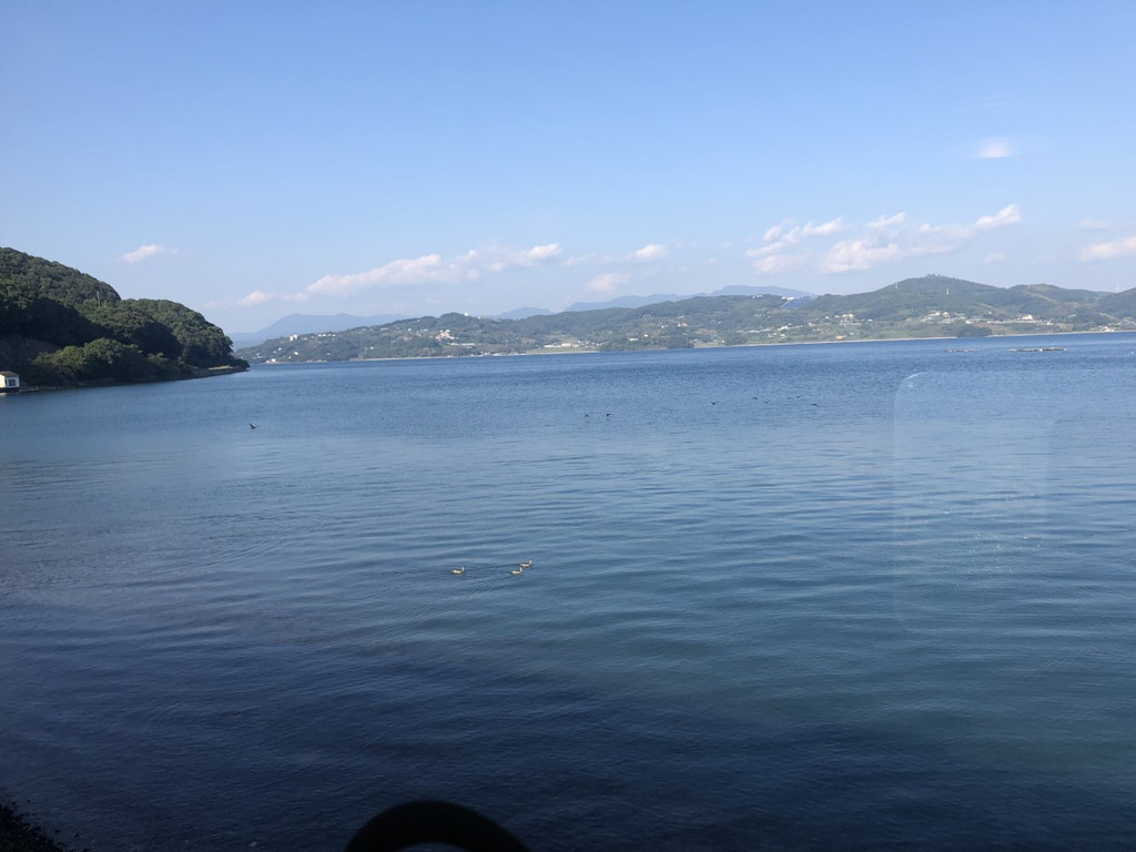车窗外,风景层次丰富,变幻万千,有日本潮水涨落最大水位差之称的有明海,还有风平浪静的大村湾。