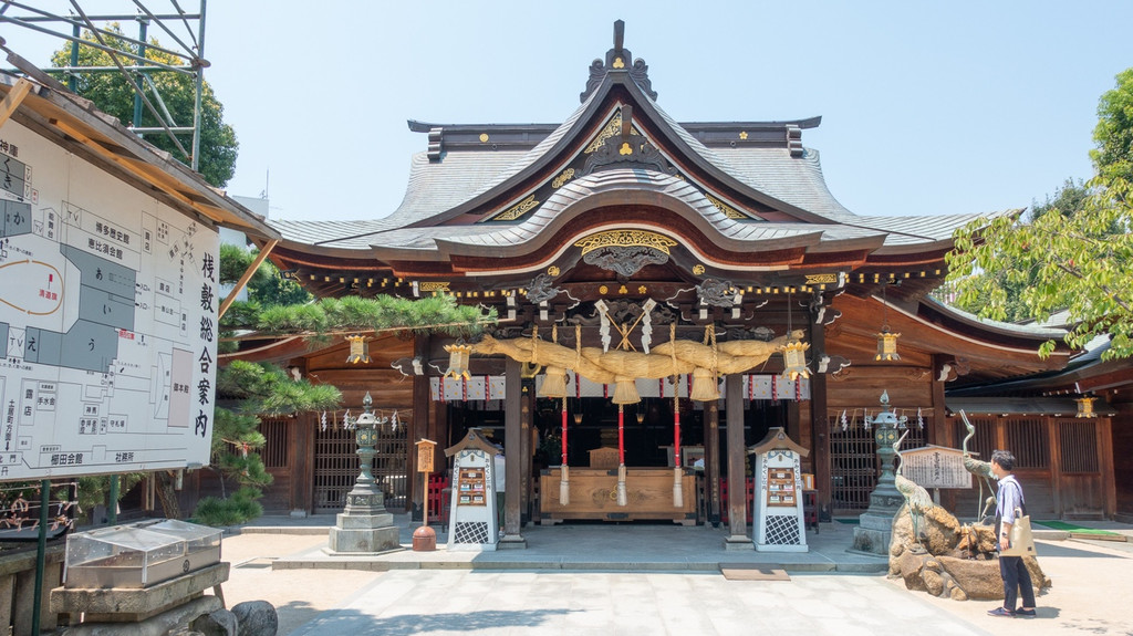 栉田神社,相传始建于公元 700 年代,是一座古老悠久的神社。栉田神社是博多的守护神,每年 7 月这里都会举行博多祇园山笠祭等活动。
