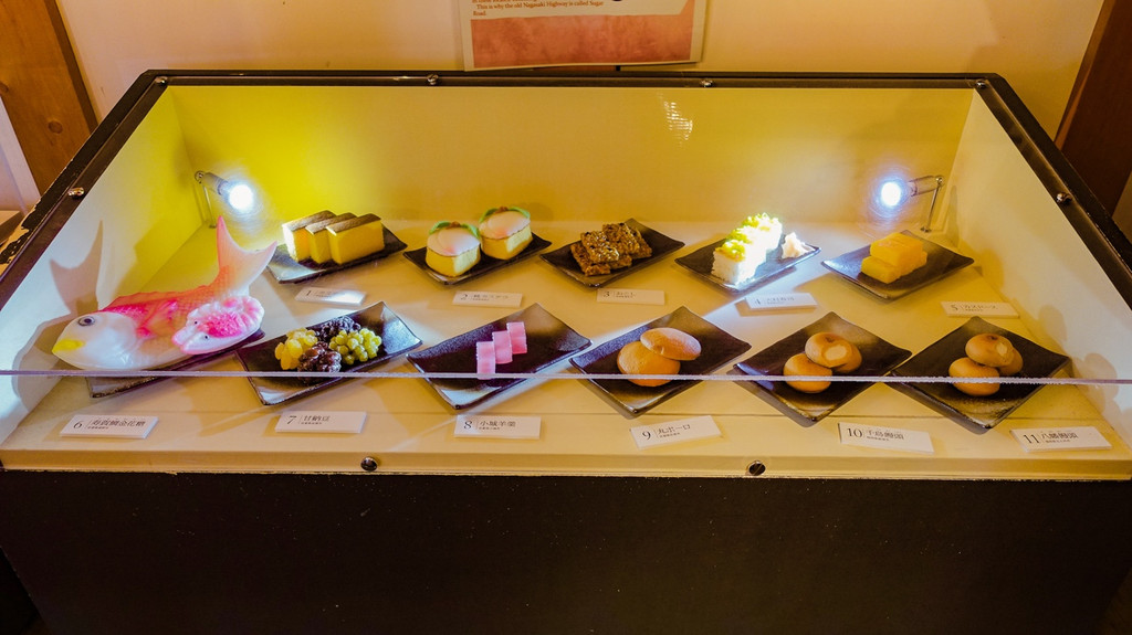 出岛美食。当时出岛是同荷兰开展贸易的窗口,因此橱窗内摆放了荷兰美食展品。