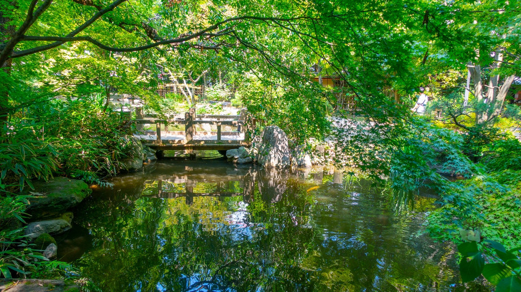 乐水园是静伫于商务办公楼一隅的日式庭院。事实上福冈市会对一些历史悠久的别墅和旅馆进行修缮后向公众开放。除日本式庭院外,这里还特意布置了一处可以品尝抹茶的茶室。