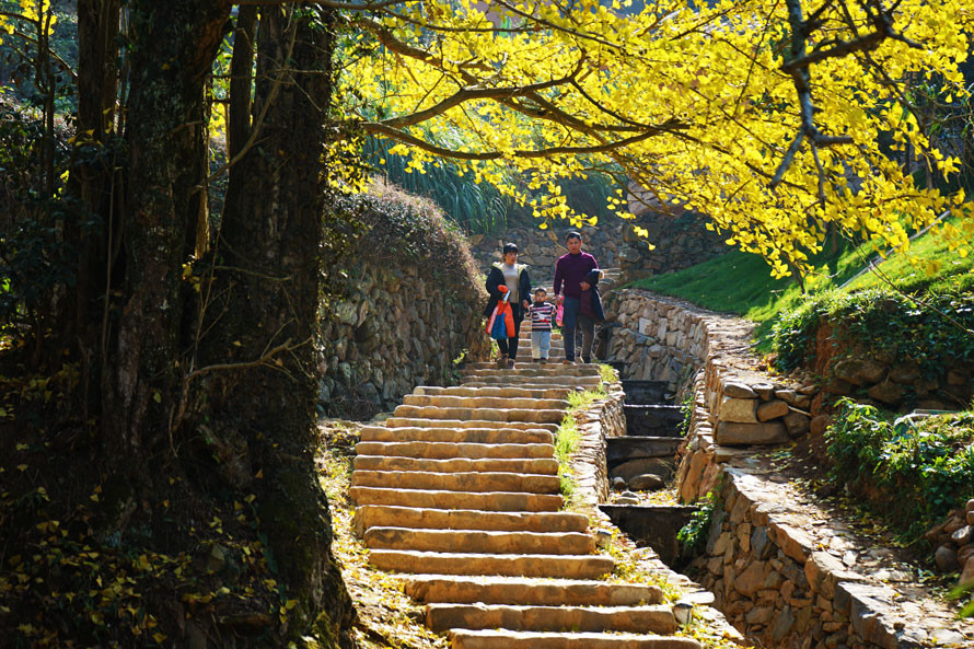 银杏树是这里别致的存在,据说这片不大的山谷里生长有千年古银杏树25棵,树龄达 400 年至 1300年,这是多么坚强的生长历程,或许打从这里有人居住开始,就有了这些银杏树了吧,谁知道呢?现在我们所知道的是,这些树已成为后世仰望惊叹的风景,护佑这峡谷里的村民,也描摹了山野村舍,在群山掩映中,惹世人惊鸿一瞥。