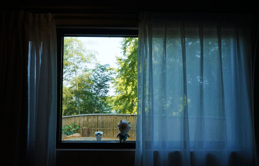 打开屋内的地暖,很快就驱散了凉意。将行李置于墙角,一股脑儿躺在床上,听窗外风过叶眉,看阳光落在竹林也照耀高大的银杏树,翠绿与金黄相互映衬,宛如泼墨。