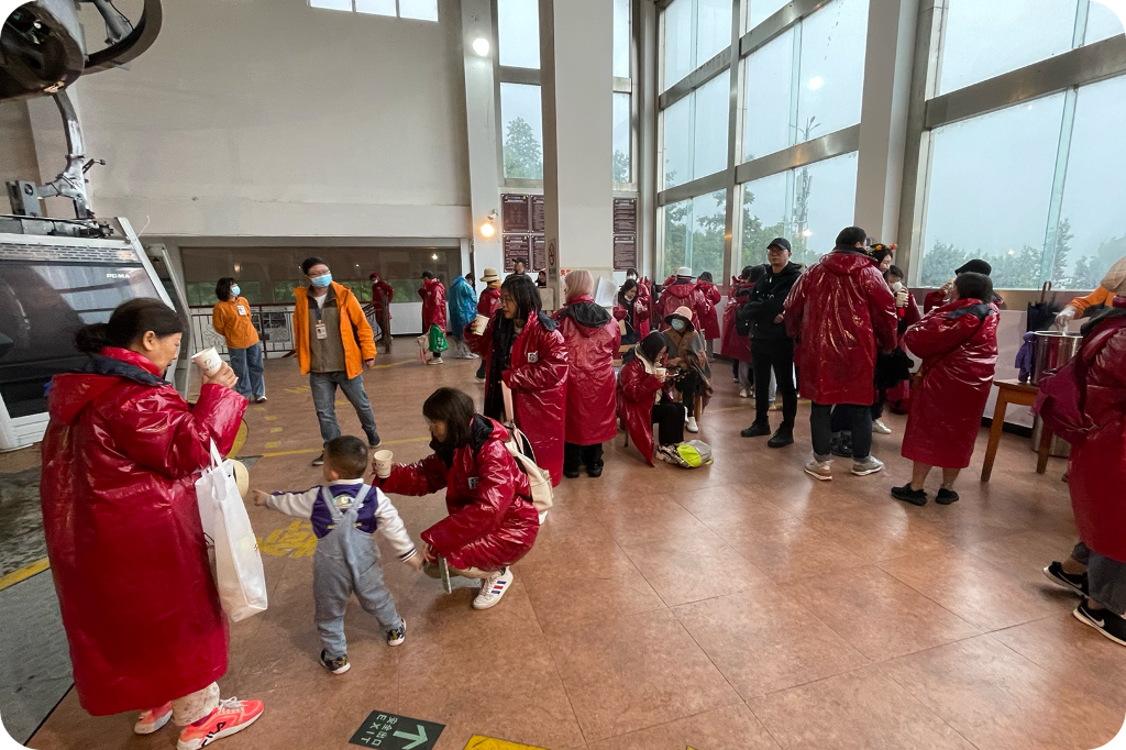 此时缆车下站的工作人员也已准备好了红糖姜茶来为我们驱寒,同时还告诉我们今天的门票可以免费改签到第二天,虽然天气是冰冷的,但是此时此刻心里却是暖暖的。