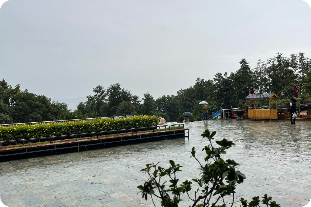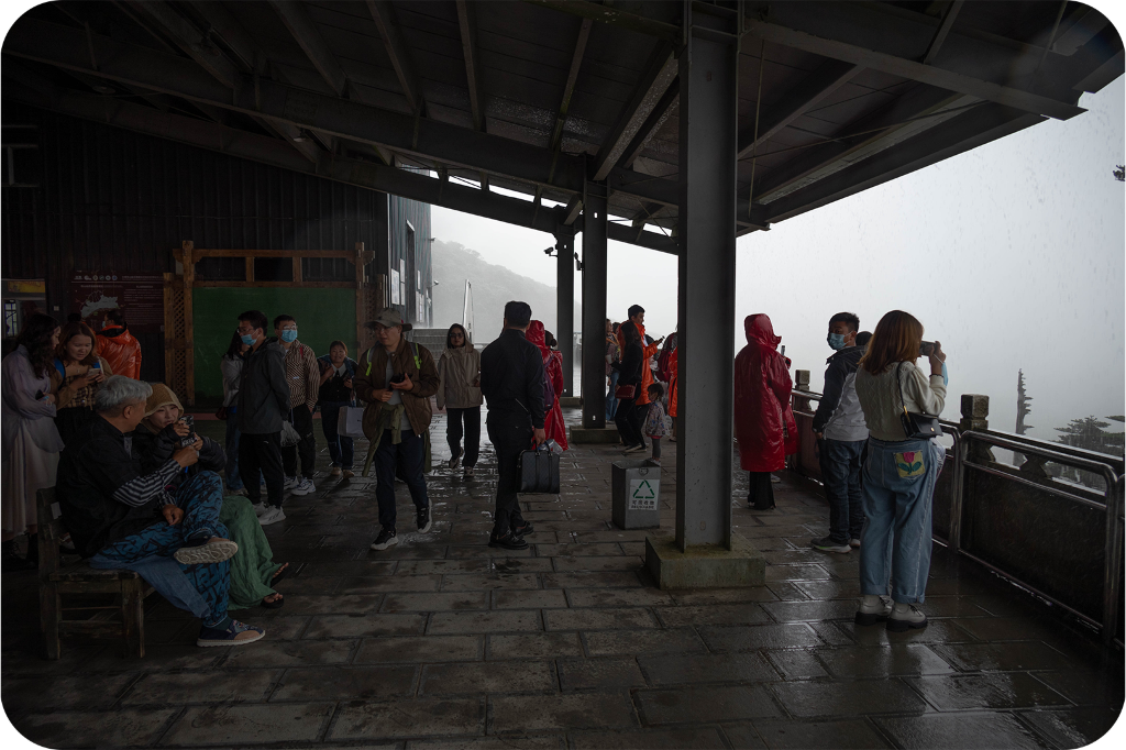 最终,在下了两个多小时的暴雨之后,雨势终于渐渐变小了,同时缆车也终于重新恢复运营,在景区工作人员的护送下,我们这些被困在山上将近三小时的难民终于平安地回到了山脚下。