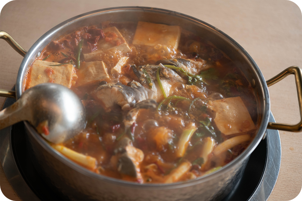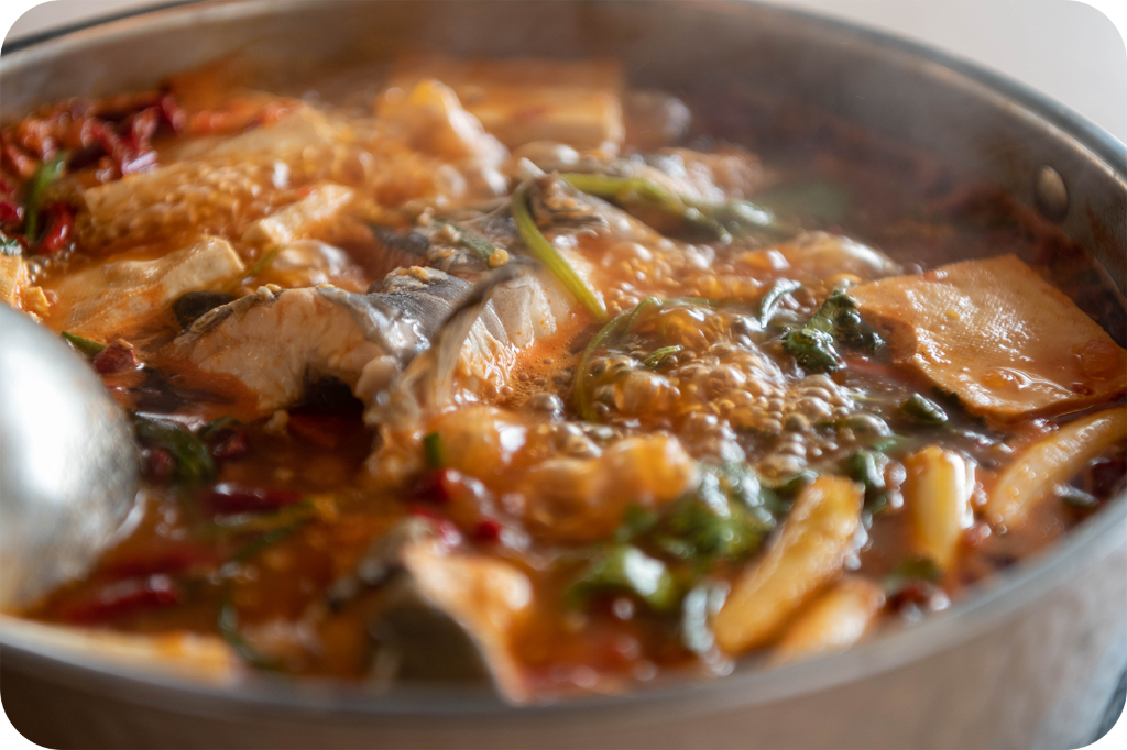 十几分钟后,热气腾腾的鱼火锅便上桌了~