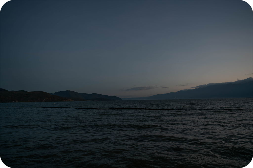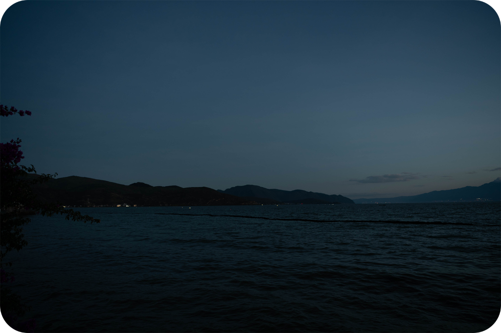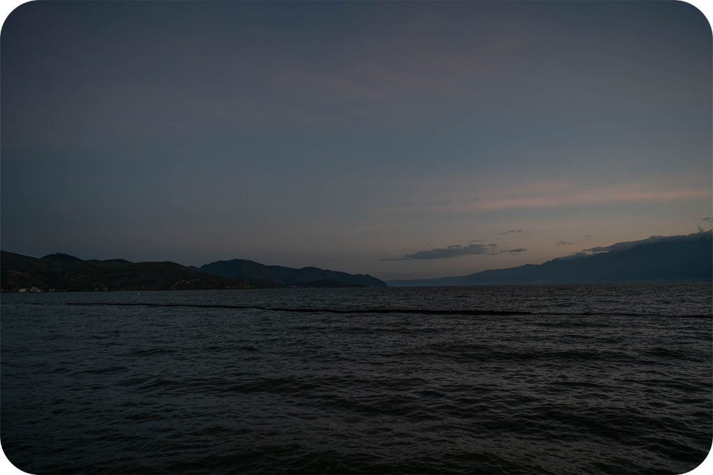 站在洱海边上,目送远方天空中晚霞的慢慢褪去,等待夜幕的慢慢降临。