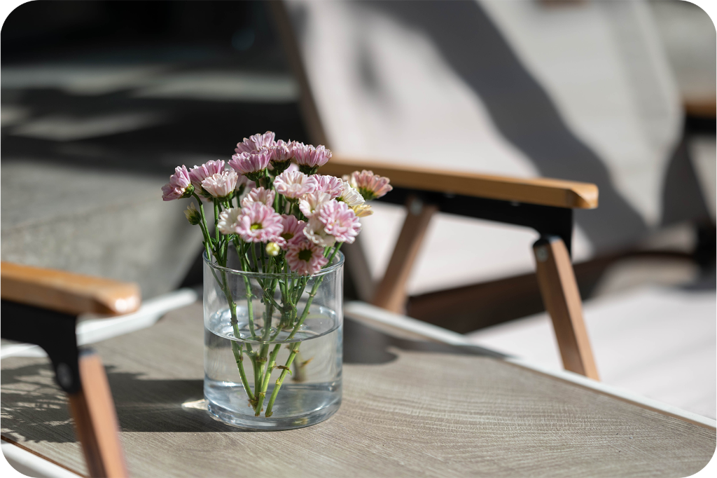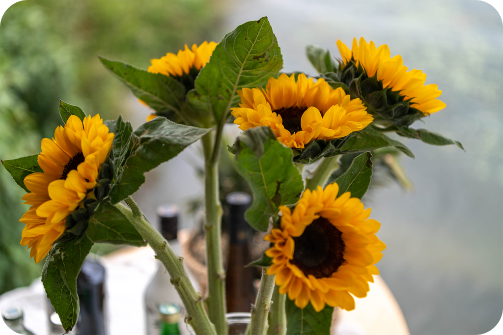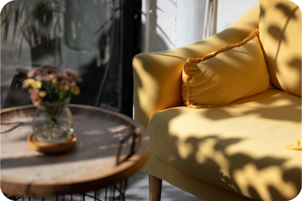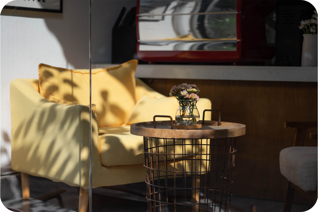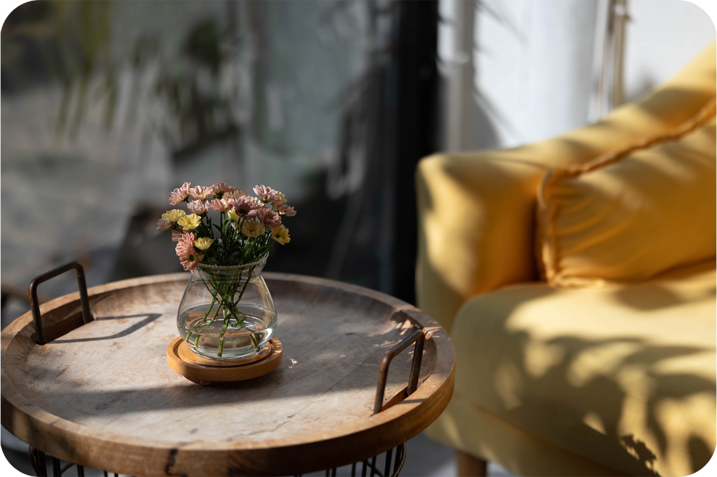 明媚的阳光洒了进来,玻璃窗前尽是生活的气息。