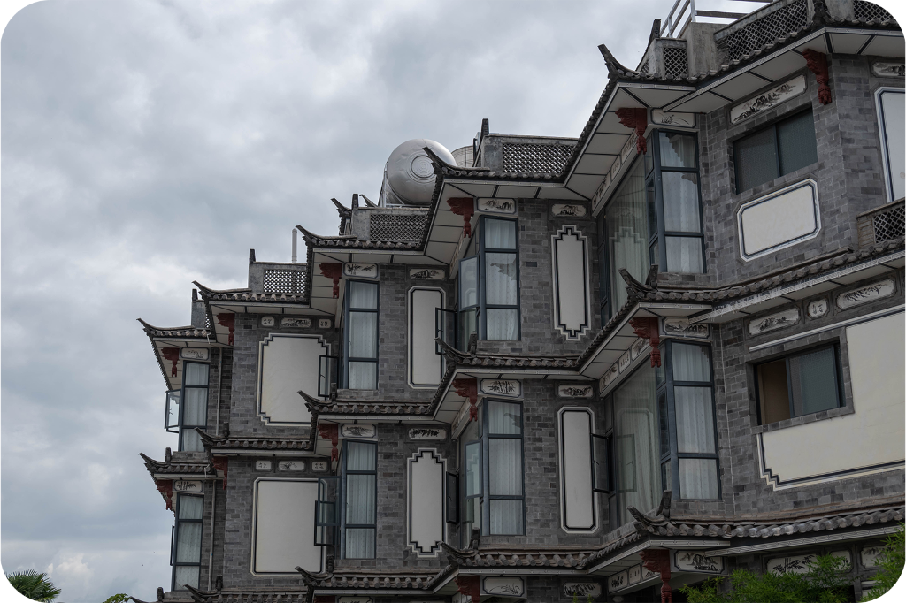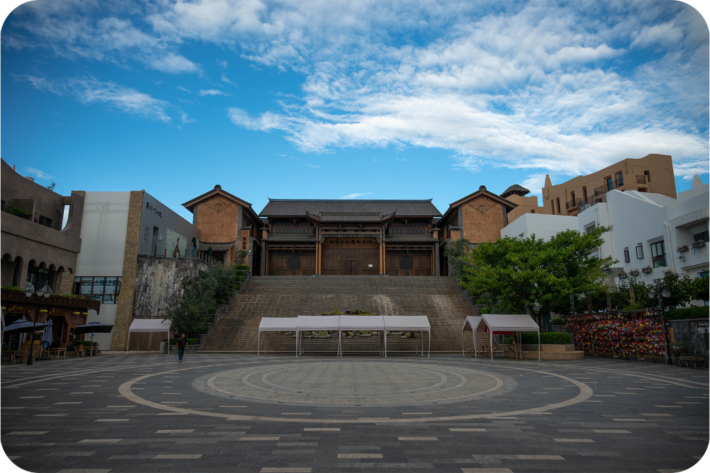 前方的这座非遗艺术馆,也是理想邦内唯一的一座纯中国风建筑。