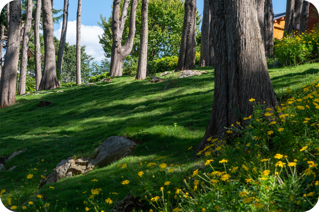 来到风情岛的另一侧,这里有着这一片被草坪所覆盖的树林,有一种童话般的美。