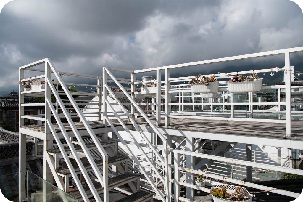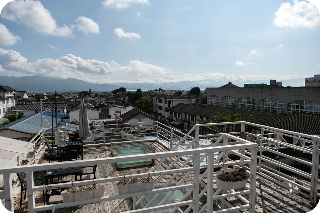再次走上客栈的楼顶露台,去年曾在这里拍下了云南之行的第一张照片,还是颇为怀念的。