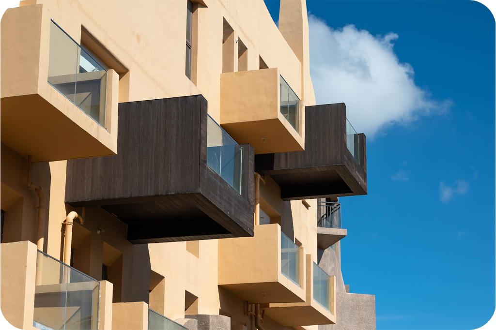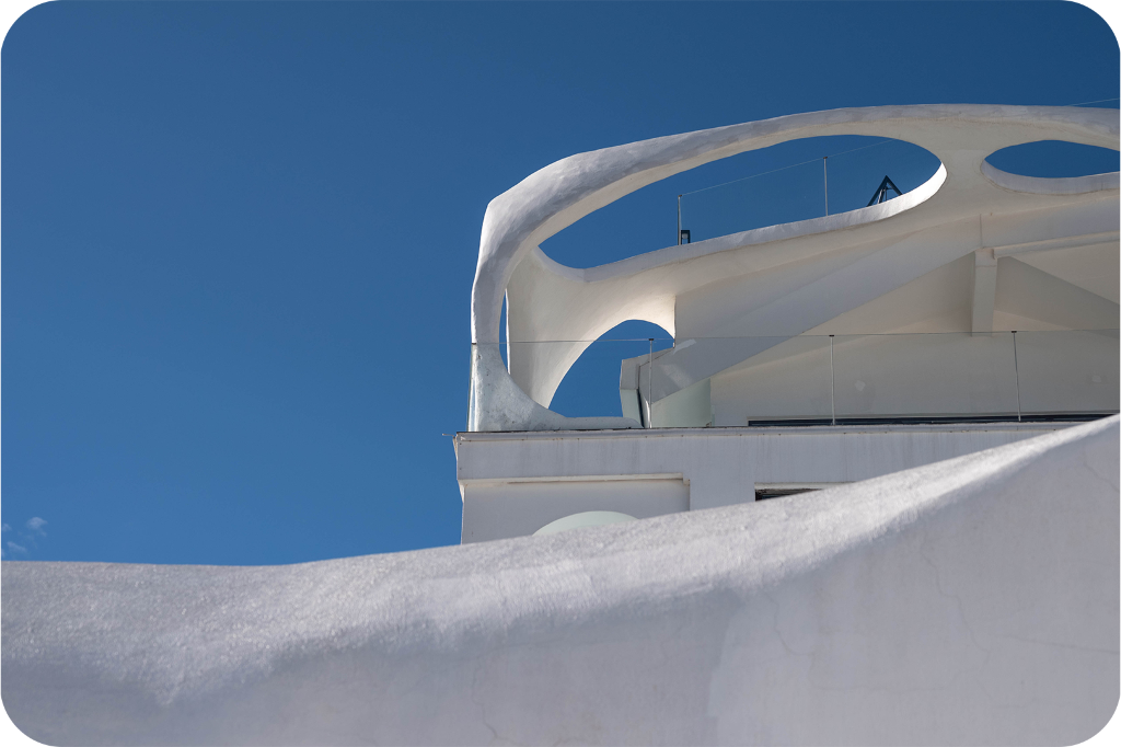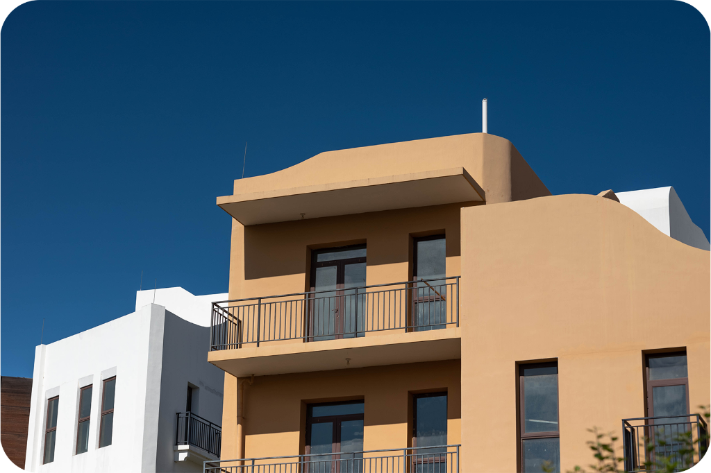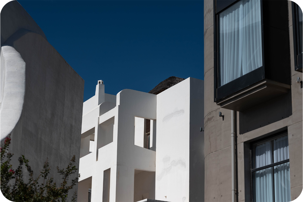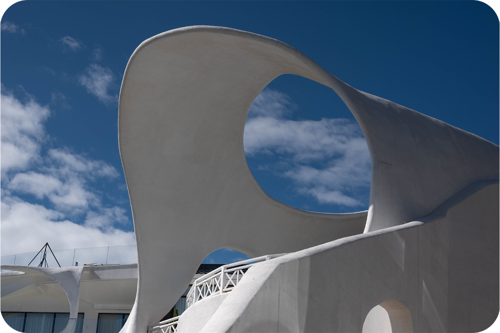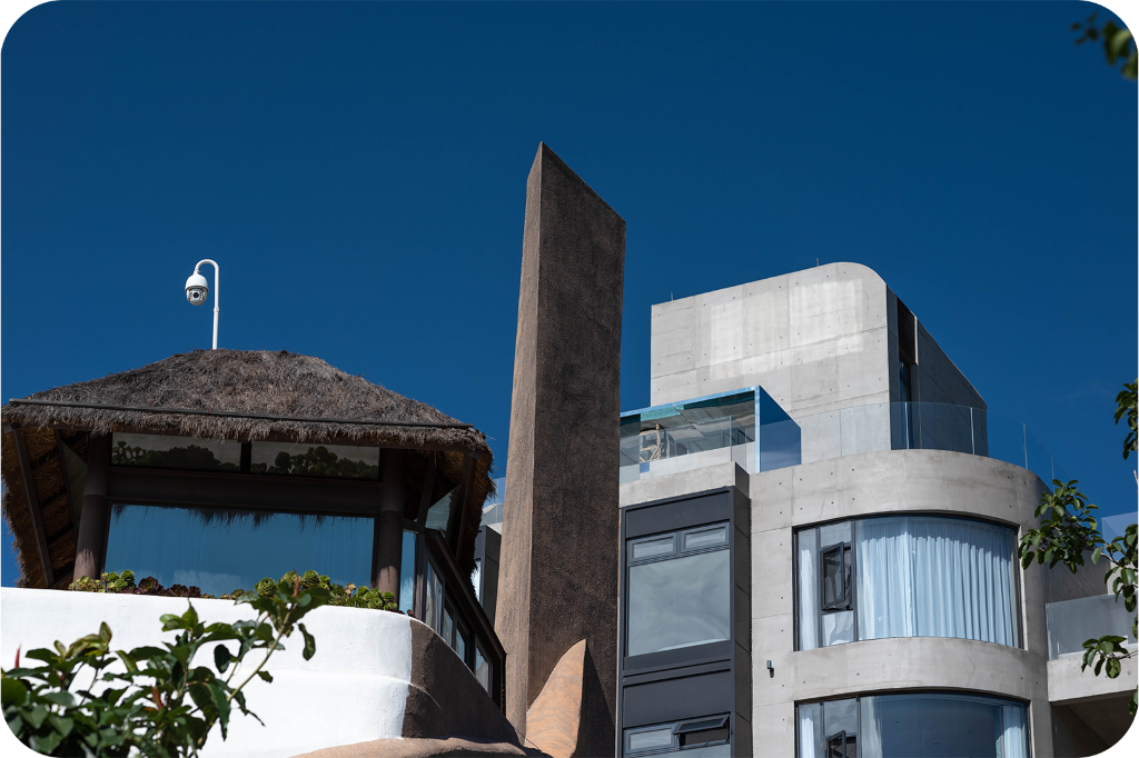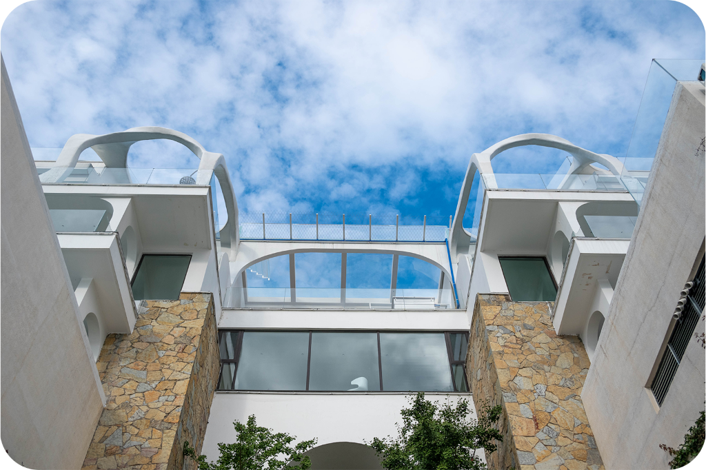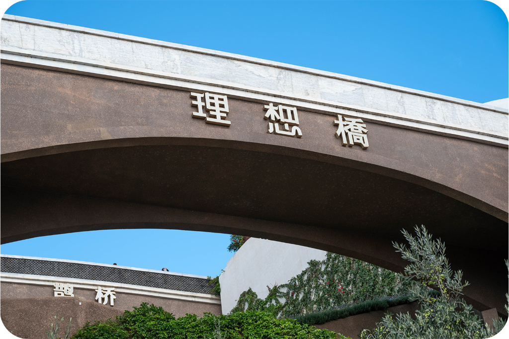 目前理想邦从外观上来看大致分为两块,前面白色的部分是酒店和商业区域,而后方浅褐色的部分则是住宅区。