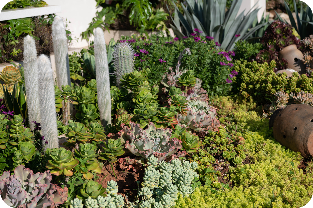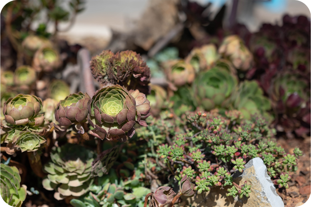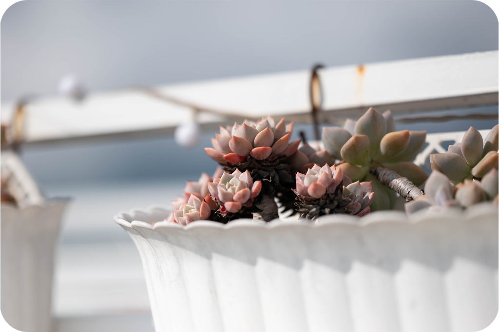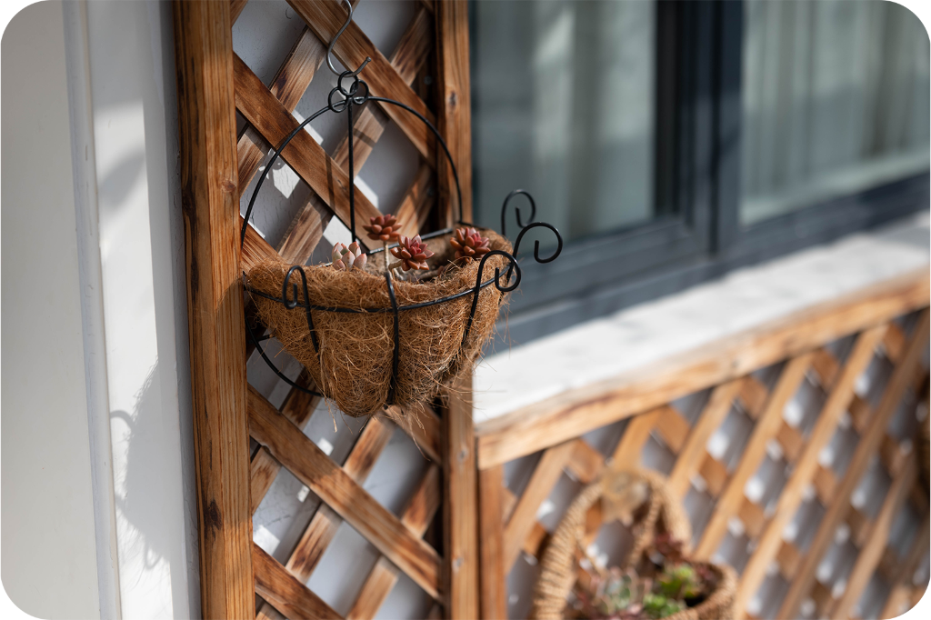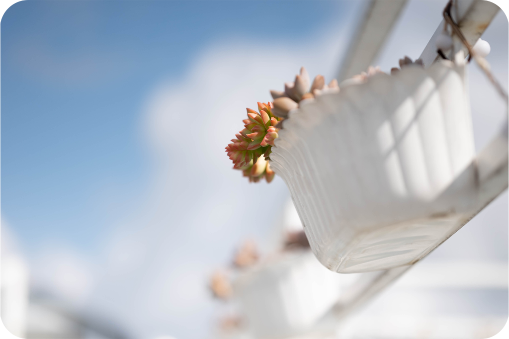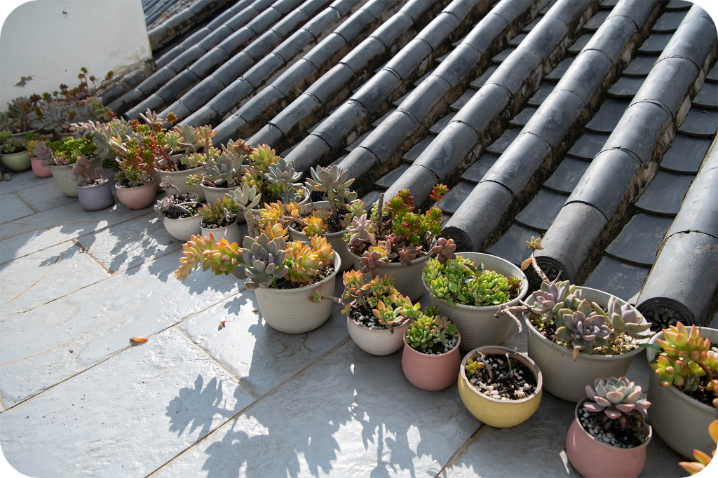 露台两边的栏杆上,挂满了状态满满的多肉。