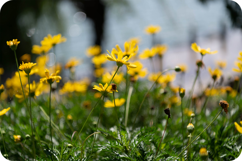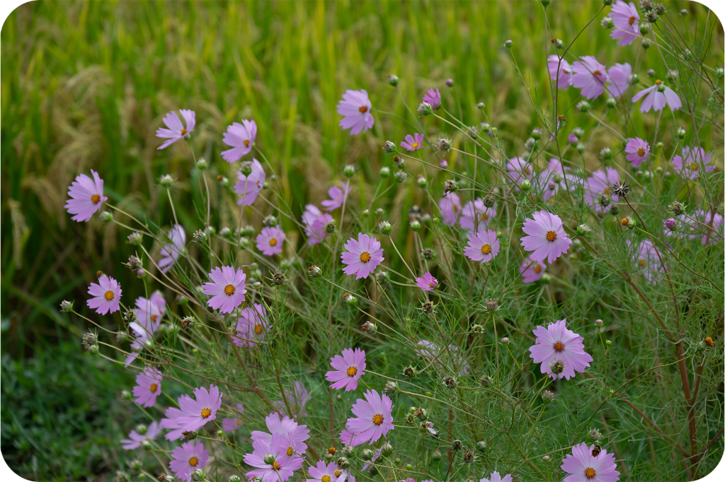 稻田里,麦穗和野花争奇斗艳,一幅春意盎然的景象。