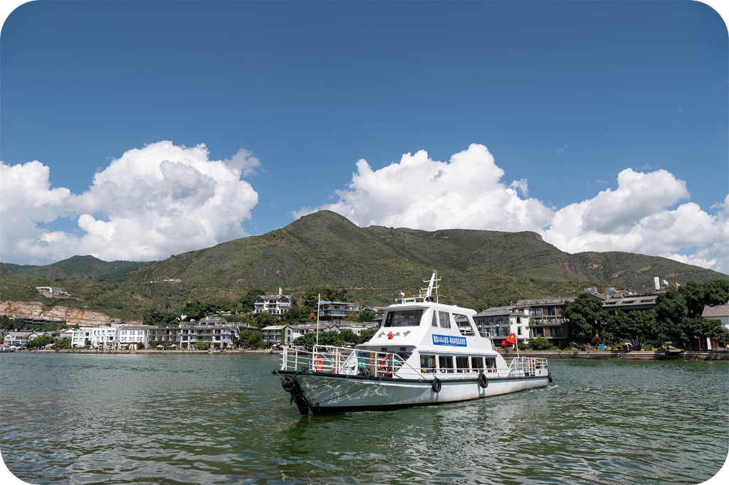 来到双廊码头,接下来就要乘坐这艘游艇前往南诏风情岛。