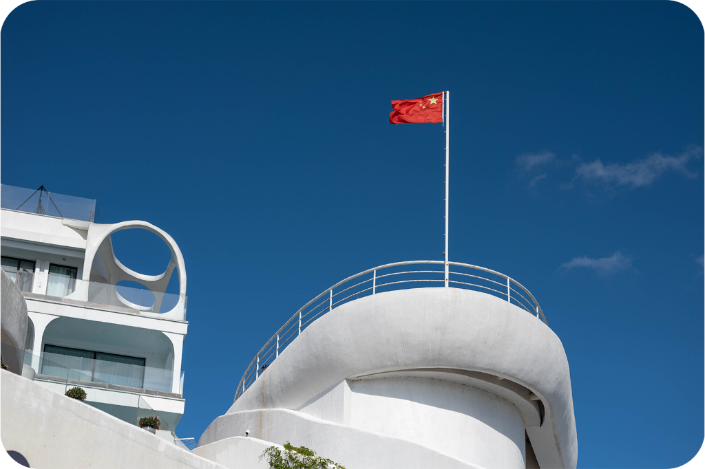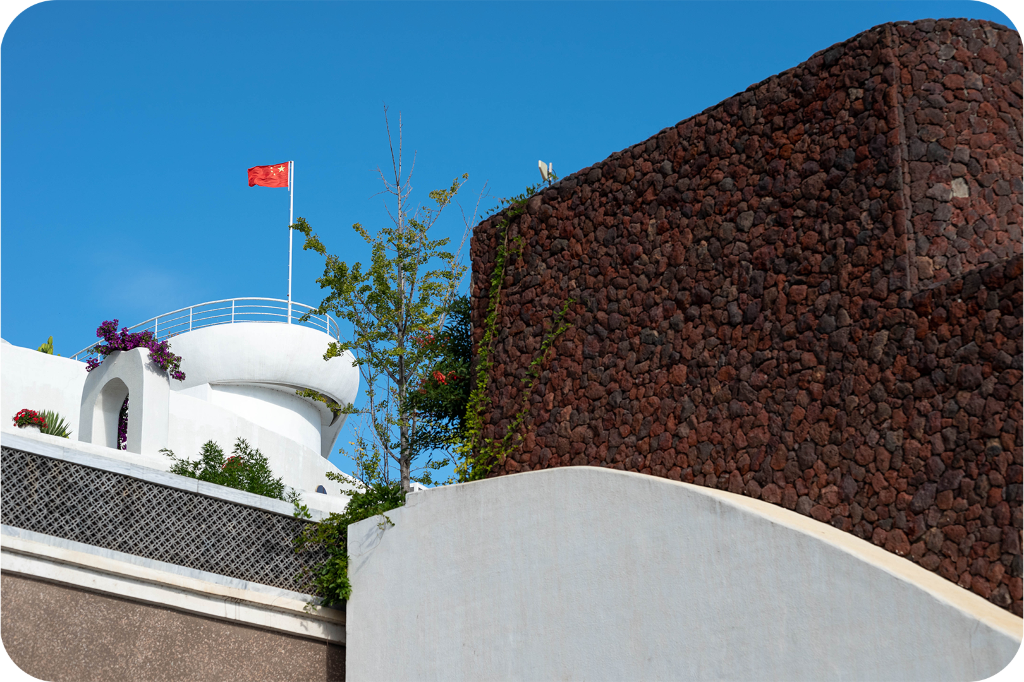 那个游轮造型上插着五星红旗的地方,是一家名叫洞穴的咖啡厅。
