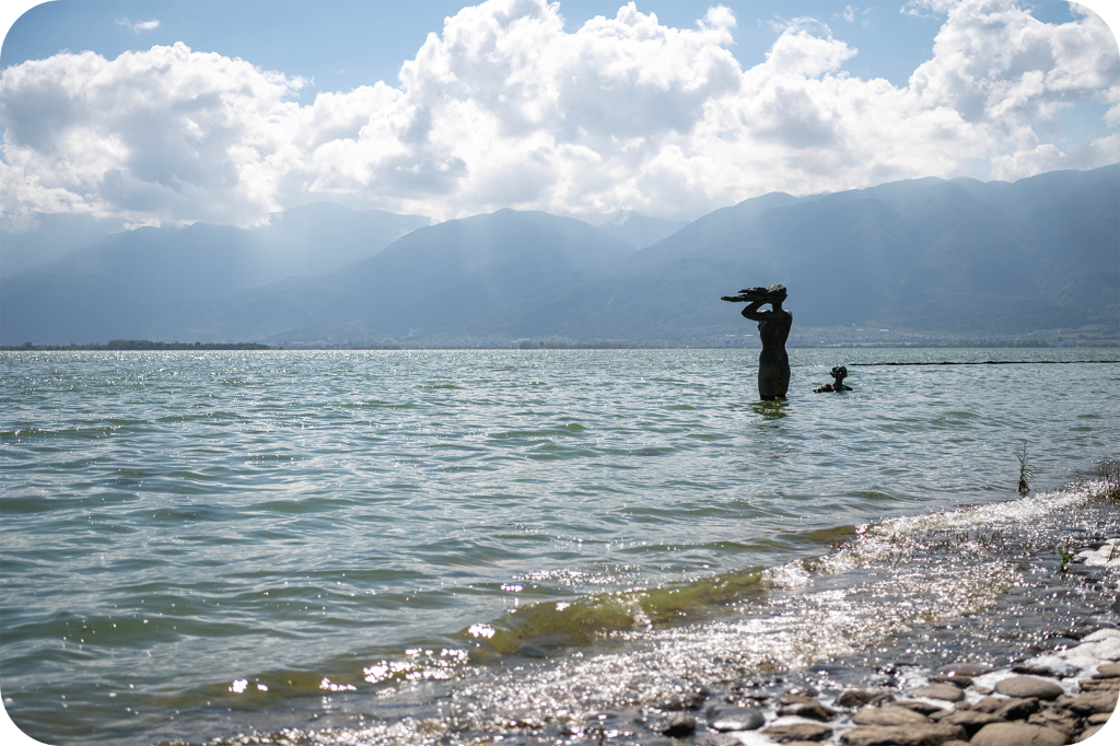 打卡地旁边的不远处,则是洱海的女儿雕像。