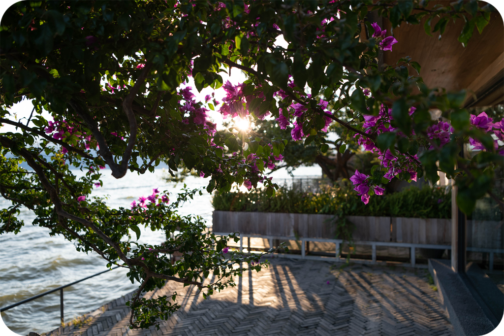洱海边上的三角梅,此时已被夕阳染上了一层淡淡的金色。