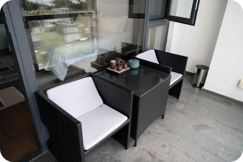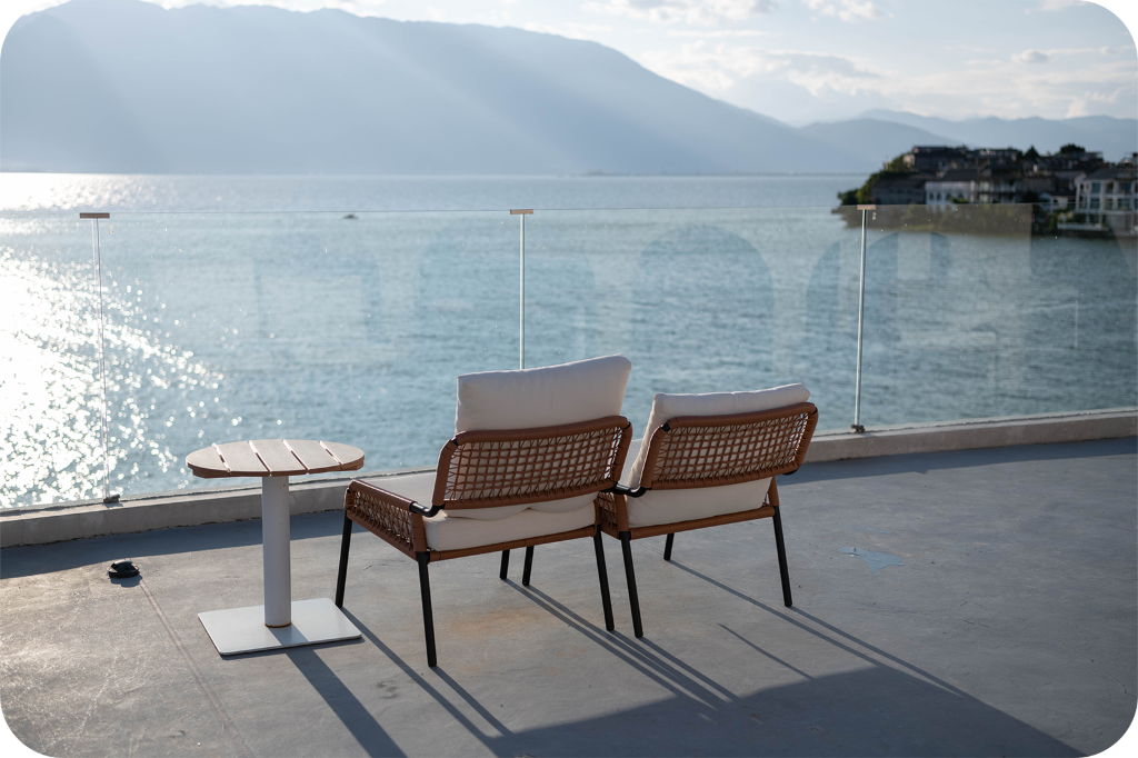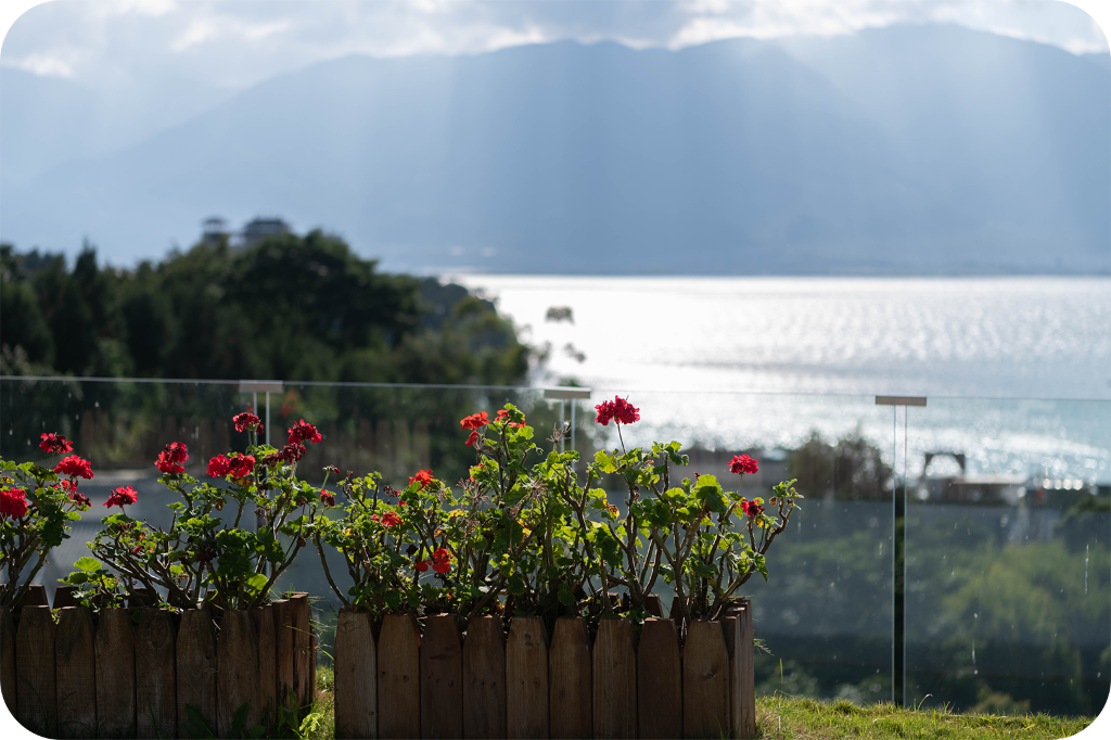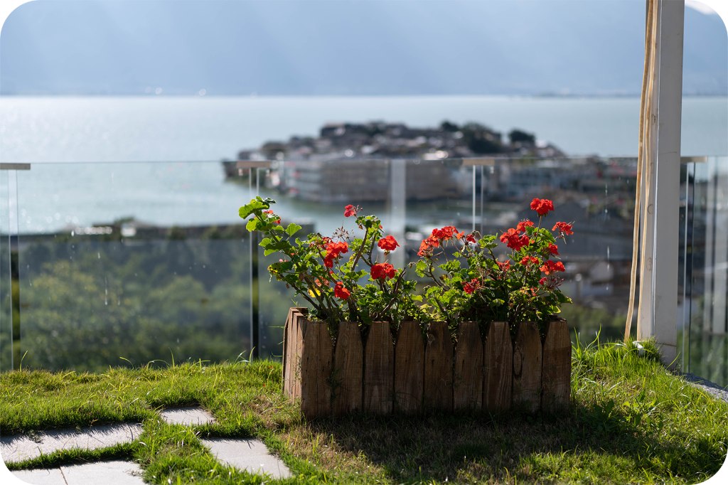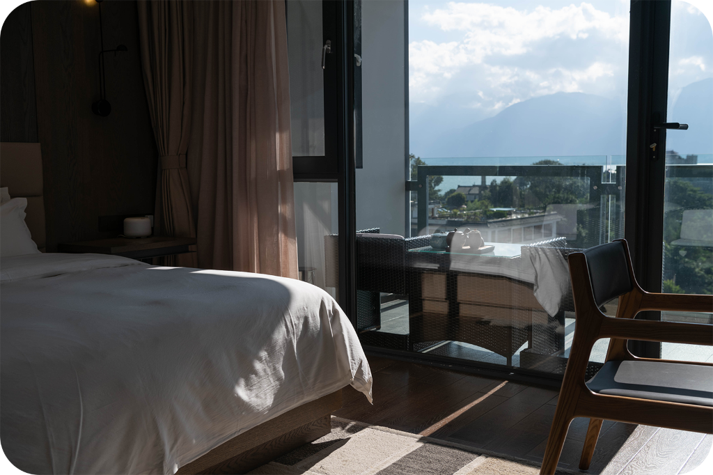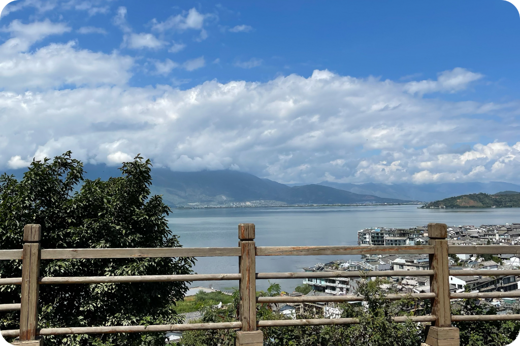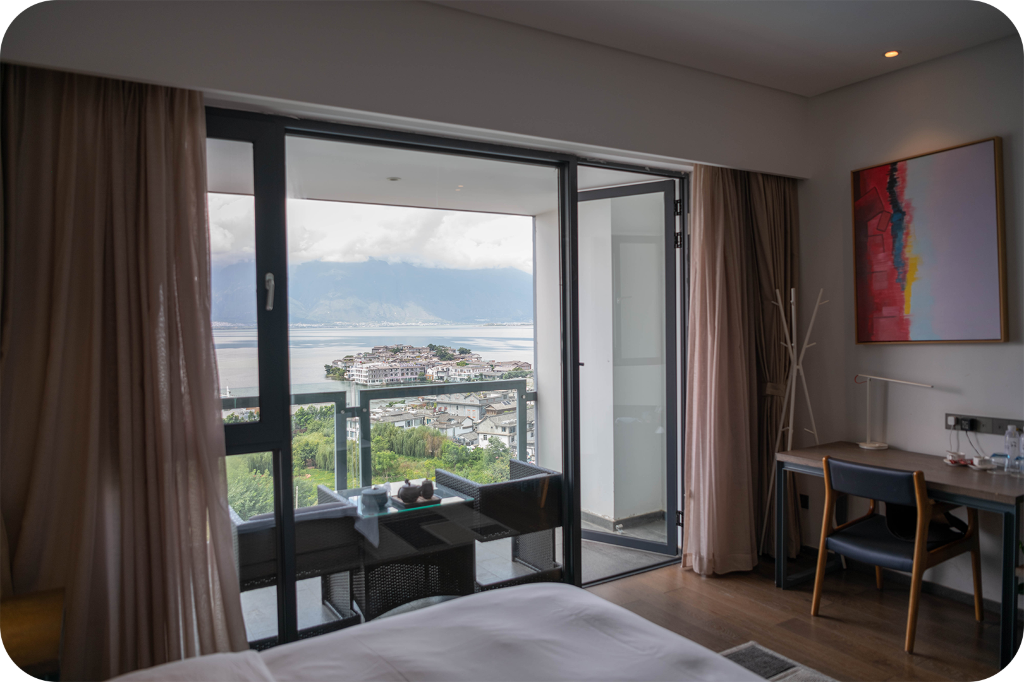 客栈房间带有小阳台,在房间外就可以远眺对面的洱海。